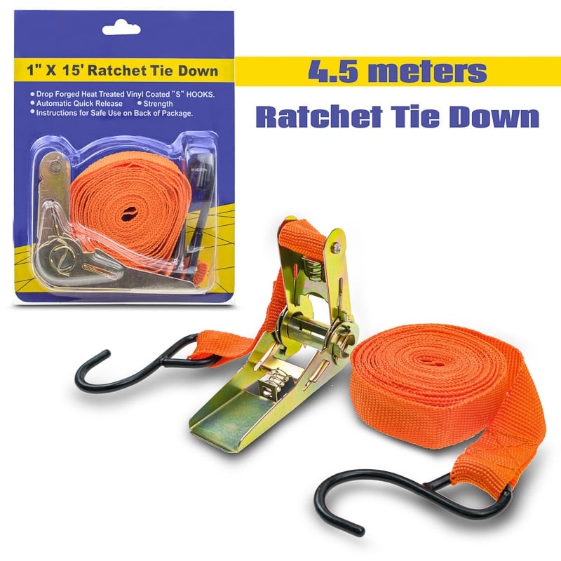 Ιμάντας ασφαλείας με καστανιά σύσφιξης και 2 γάντζους σε πορτοκαλί απόχρωση. Άψογη πρόσδεση των αντικειμένων και των φορτίων σας. Καστάνια ασφαλούς πρόσδεσης και γάντζοι για μέγιστη αποτελεσματικότητα. Από 100% υψηλής αντοχής νήματα πολυεστέρα, ανθεκτικό στη φθορά. Κατάλληλο για την πρόσδεση αποσκευών και λοιπών αντικειμένων. Χαρακτηριστικά: Είδος : Ιμάντας ασφαλείας Υλικό: Νήματα πολυεστέρα Χρώμα : Πορτοκαλί Διαστάσεις: 25mm x 4.5m DOA 14 Ημερών