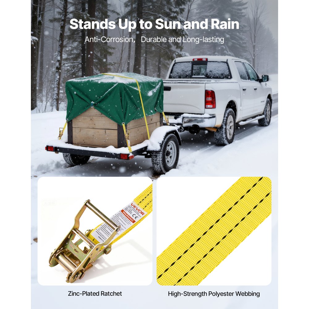 Ανθεκτικότατες Ονομαστικές Ονομασίες Φορτίου: Αυτός ο ιμάντας με καστάνια προσφέρει φορτίο εργασίας 1460 λίβρες και αντοχή σε θραύση 4400 λίβρες, έτσι ώστε ο εξοπλισμός σας να παραμένει στη θέση του σε στάσεις και χτυπήματα. Είναι μια καθαρή νίκη για ποδήλατα, εργαλεία και ογκώδη κουτιά. Ένας ιμάντας, πολλές εργασίες: Ο ιμάντας πολυεστέρα 1,5 ίντσας x 20 ποδιών προσφέρει σταθερή εμβέλεια και δύναμη συγκράτησης. Μπορείτε να τυλίξετε και να ασφαλίσετε τα περισσότερα φορτία - από SUV μέχρι φορτηγάκια - έτσι ώστε τα έπιπλα, ο εξοπλισμός και η λαβή να παραμένουν τακτοποιημένα στη θέση τους. Ανθεκτικότητα στη σκουριά: Η καστάνια και τα εξαρτήματα με επιψευδαργυρωμένη επίστρωση συνδυάζονται με ιμάντες από πολυεστέρα ανθεκτικό στην τριβή. Το σετ ιμάντων πρόσδεσης φορτίου αντέχει στον ήλιο, τη βροχή και τη βρωμιά του δρόμου για αξιόπιστη και μακράς διαρκείας πρόσδεση. Γρήγορη σύνδεση: Τα διπλά άγκιστρα J με φαρδύ στόμιο ασφαλίζουν γρήγορα στις ράγες φορτηγών, στα σημεία πρόσδεσης τρέιλερ και στους δακτυλίους D. Ο ιμάντας πρόσδεσης με καστάνια σφίγγει ομαλά για να διατηρεί το φορτίο σφιχτό για μετακινήσεις επίπλων, εξωτερικών εργαλείων και εξοπλισμού. Εύκολο Σύσφιγμα με Μόνη Χρήση: Η καστάνια με μοχλό σάς επιτρέπει να ασφαλίζετε τον ιμάντα πρόσδεσης του φορτηγού γρήγορα και ομοιόμορφα. Ένα άτομο μπορεί να ασφαλίσει ένα φορτίο από την αρχή μέχρι το τέλος, ώστε να ξεκινήσετε νωρίτερα.