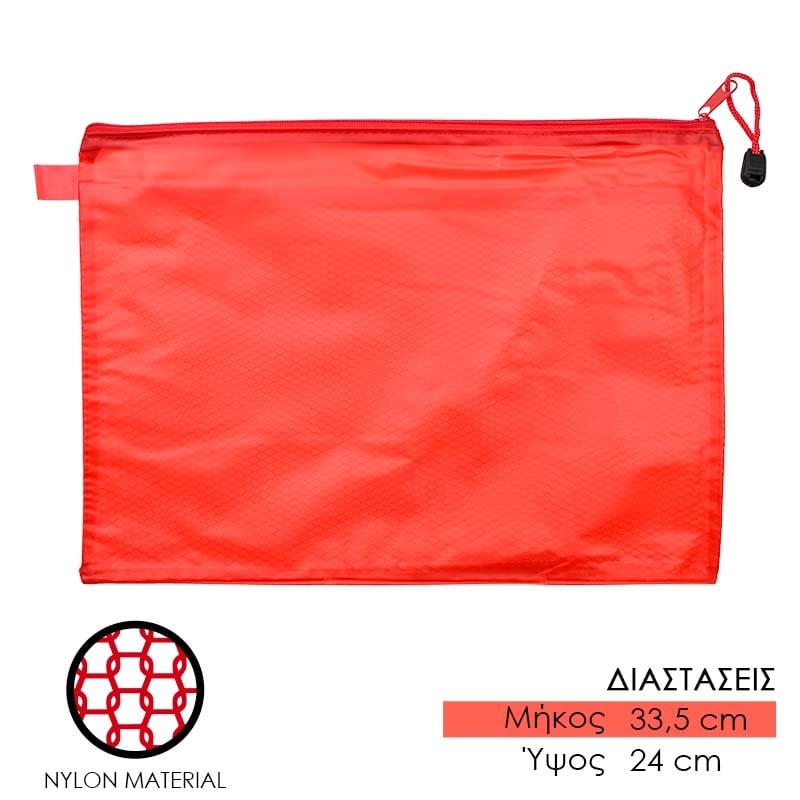 Ημιδιάφανος Φάκελος Νάιλον με Φερμουάρ Κόκκινος