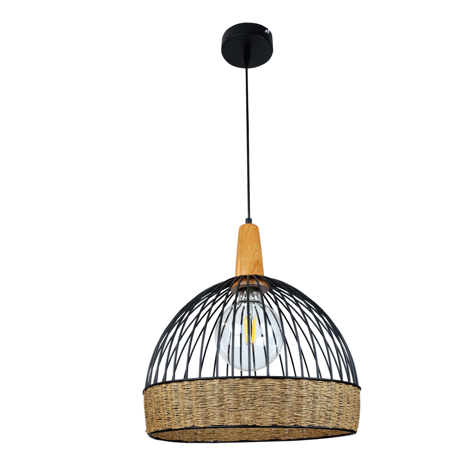 InLight Κρεμαστό φωτιστικό από μαύρο μέταλλο, σχοινί και ξύλο 1XE27 D:35cm (4027-Α)