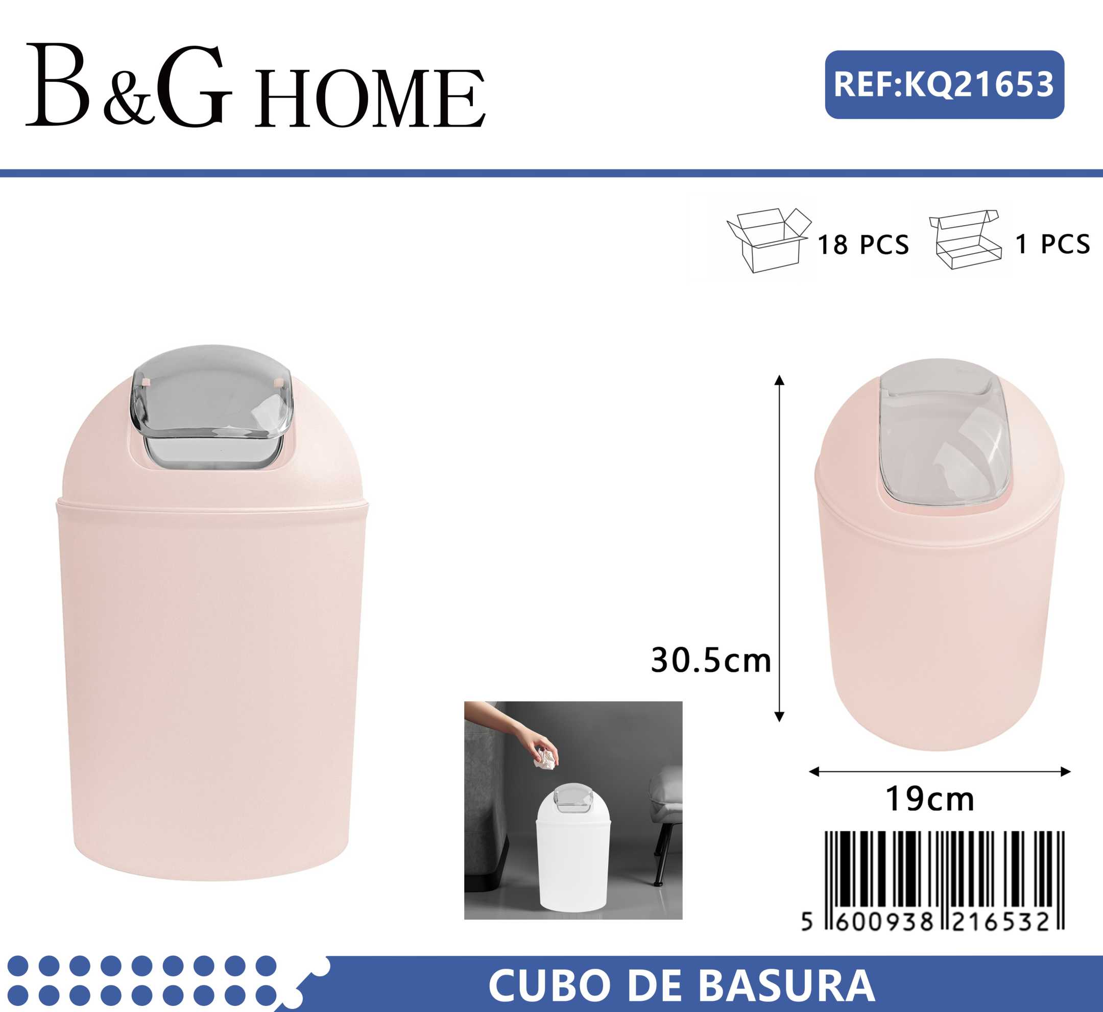 Κάδος απορριμμάτων μπάνιου πλαστικός - Light Pink - 21653
