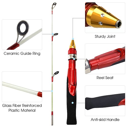 Καλάμι ψαρέματος για καθετή, δίσπαστο, κατασκευασμένο από ενισχυμένες ίνες υψηλής αντοχής, οπλισμένο με οδηγούς και εργονομική λαβή υψηλής ποιότητας.