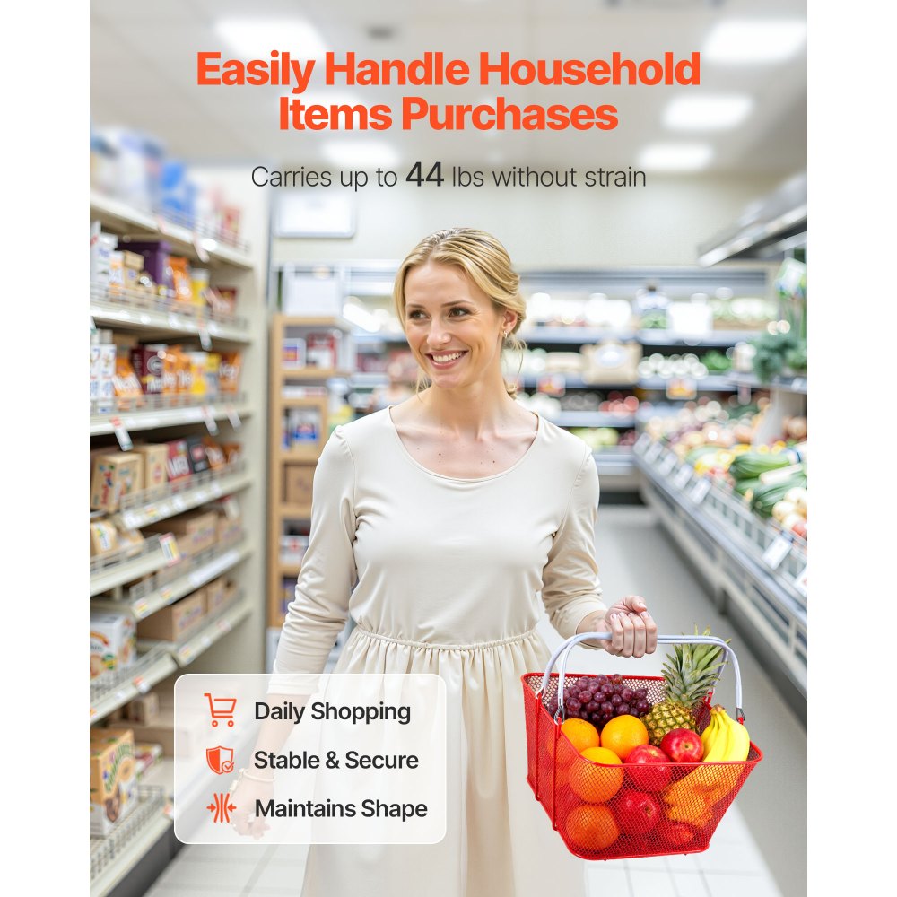 Ανθεκτικά στη σκουριά και ανθεκτικά: Κατασκευασμένα από γαλβανισμένο σίδερο και ενισχυμένες λωρίδες πυθμένα, αυτά τα καλάθια αγορών προσφέρουν ανώτερη αντοχή, ανθεκτικότητα και αντοχή στη φθορά. Κάθε καλάθι αντέχει έως και 22 κιλά, ιδανικό για λιανική ή οικιακή χρήση. Στοιβαζόμενα για εξοικονόμηση χώρου: Οι ισχυρές ατσάλινες λαβές με καουτσούκ παρέχουν ασφαλές και άνετο κράτημα. Όταν δεν χρησιμοποιούνται, τα καλάθια παντοπωλείων μας με λαβές στοιβάζονται κάθετα για εύκολη αποθήκευση και οργάνωση, παραμένοντας φορητά και βολικά. Αναπνεύσιμος Σχεδιασμός με Κοίλο Μέσο: Με διαστάσεις 16,54 x 12,60 x 7,48 ίντσες, αυτά τα καλάθια αγορών με λαβές παρέχουν άφθονο αποθηκευτικό χώρο. Η κοίλη δομή επιτρέπει τον αερισμό, διατηρεί το περιεχόμενο στεγνό και ορατό και ενισχύει την ανθεκτικότητα για να αντέχει στην καθημερινή χρήση. Άφθονη Ποσότητα: Κάθε σετ καλαθιών αγορών περιλαμβάνει 12 καλάθια, παρέχοντας άφθονο για πολλαπλές χρήσεις και αντικαταστάσεις. Με αρκετά καλάθια διαθέσιμα, μπορείτε να οργανώνετε τα προϊόντα πιο αποτελεσματικά, να έχετε πρόσβαση σε αυτά οποιαδήποτε στιγμή και να διασφαλίζετε μια ομαλή εμπειρία για τους πελάτες. Ευέλικτο για πολλές χρήσεις: Αυτά τα καλάθια χειρός για ψώνια είναι ιδανικά για εμπορικά κέντρα, σούπερ μάρκετ, βιβλιοπωλεία, καταστήματα καλλυντικών, μπουτίκ, ανθοπωλεία, γκαράζ και άλλα. Διατηρούν τα αντικείμενα οργανωμένα και παρέχουν μια πρακτική λύση αποθήκευσης για επιχειρήσεις ή σπίτι.