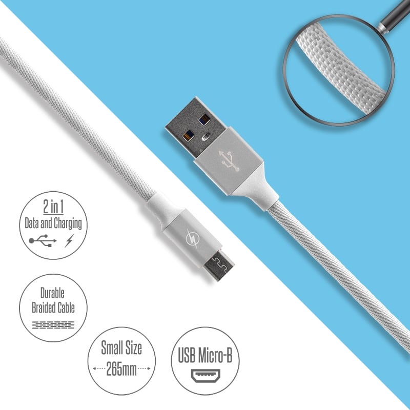 Καλώδιο σύνδεσης για όλες τις συσκευές με θύρα Micro Usb, κατάλληλο για μεταφορά δεδομένων η για φόρτιση της αγαπημένης σας συσκευής. Παράλληλα ο Braided σχεδιασμός σε συνδυασμό με τις μεταλλικές απολήξεις του, σας εξασφαλίζει αντοχή στον χρόνο και στην χρήση. DOA 14 Ημερών