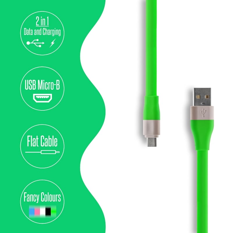 Καλώδιο Φόρτισης - Δεδομένων Micro USB 120cmΙδανική λύση για γρήγορη φόρτιση αλλά και για μεταφορά δεδομένων. Καινοτόμος flat σχεδιασμός για να μην μπλέκεται ποτέ.Φανταχτερό χρώμα για να ξεχωρίζει από τα κοινά καλώδια. Χαρακτηριστικά: Χρώμα: Πράσινο Μήκος: 120cm Υλικό: TPE / 102 copper wires Έξοδος: 2.1A max DOA 14 Ημερών