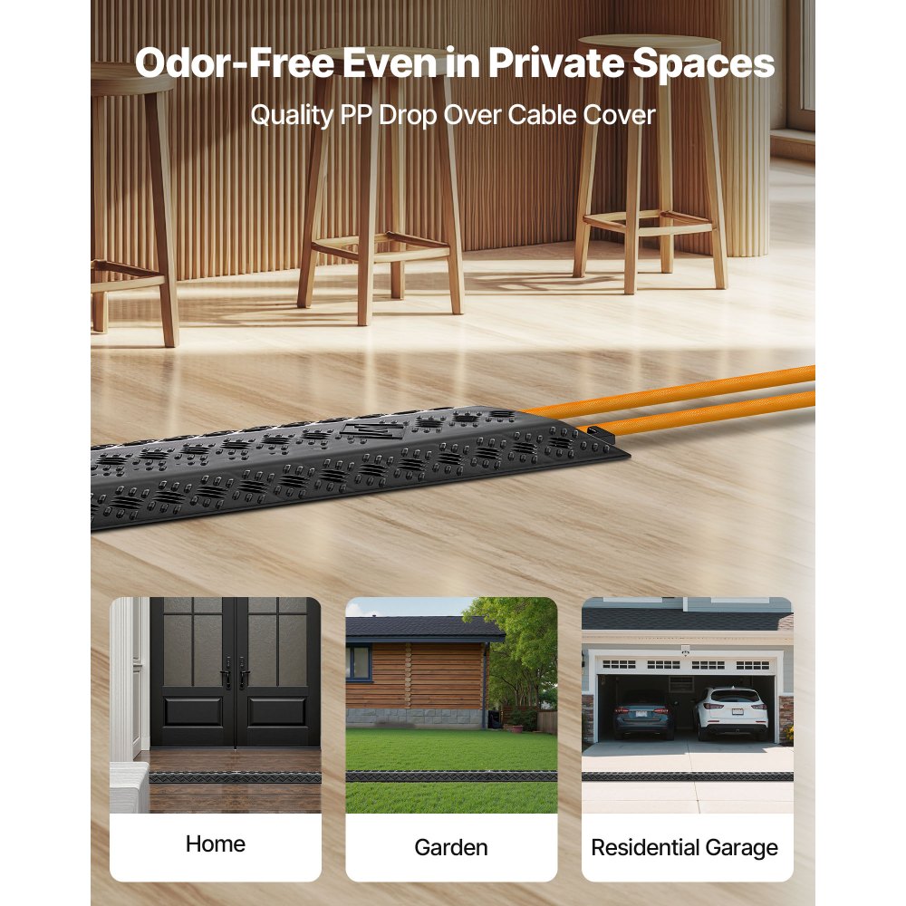 Χωρίς δυσάρεστες οσμές: Κατασκευασμένο από ποιοτικό υλικό PP, αυτό το κάλυμμα καλωδίου με δυνατότητα πτώσης είναι ελαφρύ, ανθεκτικό και εύκολο στη μεταφορά και την εγκατάσταση. Δεν έχει έντονη ή δυσάρεστη οσμή, καθιστώντας το πιο ασφαλές για χρήση σε ιδιωτικούς ή εσωτερικούς χώρους. Χωρητικότητα φορτίου 17.500 λίβρες/άξονα: Κατασκευασμένο ανθεκτικό για να χειρίζεται την κυκλοφορία βαρέων φορτηγών χωρίς ρωγμές ή στρεβλώσεις. Η ράμπα καλωδίου μας υποστηρίζει SUV, φορτηγά, αναπηρικά αμαξίδια, μοτοσικλέτες, ποδήλατα, σκούτερ και καροτσάκια σε ανώμαλο έδαφος ή κράσπεδα. Η ασφάλεια προέχει: Η αντιολισθητική ανάγλυφη επιφάνεια μειώνει τον κίνδυνο ολίσθησης των τροχών και ολισθήσεων των πεζών, ακόμη και σε βροχή ή χιόνι. Αυτό το κάλυμμα καλωδίου που πέφτει πάνω από το έδαφος εξασφαλίζει ασφαλείς διαβάσεις τόσο για οχήματα όσο και για άτομα. Εύκολη εγκατάσταση: Διαθέτει σχεδιασμό διπλού καναλιού, αυτή η ράμπα προστασίας καλωδίων περνάει δύο καλώδια δίπλα-δίπλα χωρίς να μπερδεύονται. Συνδέονται μεταξύ τους σαν δομικά στοιχεία για γρήγορη εγκατάσταση, παραμένοντας σταθερά στη θέση τους διατηρώντας παράλληλα τα πάντα τακτοποιημένα και οργανωμένα. Ευέλικτο για κάθε χώρο: Κατασκευασμένο από ποιοτικό υλικό χωρίς έντονες οσμές, αυτό το προστατευτικό σωλήνα με κίνηση πάνω από το λάστιχο εξασφαλίζει ένα πιο άνετο περιβάλλον. Ιδανικό για εσωτερικούς χώρους όπως ιδιωτικά γκαράζ, σχολεία, εμπορικά κέντρα, γραφεία και χώρους εμπορικών εκθέσεων.