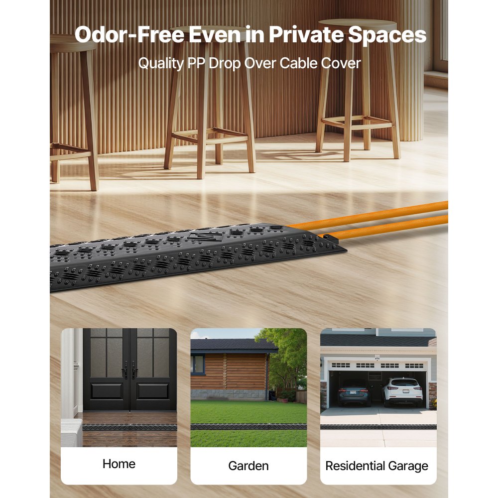 Χωρίς δυσάρεστες οσμές: Κατασκευασμένο από ποιοτικό υλικό PP, αυτό το κάλυμμα καλωδίου με δυνατότητα πτώσης είναι ελαφρύ, ανθεκτικό και εύκολο στη μεταφορά και την εγκατάσταση. Δεν έχει έντονη ή δυσάρεστη οσμή, καθιστώντας το πιο ασφαλές για χρήση σε ιδιωτικούς ή εσωτερικούς χώρους. Χωρητικότητα φορτίου 17.500 λίβρες/άξονα: Κατασκευασμένο ανθεκτικό για να χειρίζεται την κυκλοφορία βαρέων φορτηγών χωρίς ρωγμές ή στρεβλώσεις. Η ράμπα καλωδίου μας υποστηρίζει SUV, φορτηγά, αναπηρικά αμαξίδια, μοτοσικλέτες, ποδήλατα, σκούτερ και καροτσάκια σε ανώμαλο έδαφος ή κράσπεδα. Η ασφάλεια προέχει: Η αντιολισθητική ανάγλυφη επιφάνεια μειώνει τον κίνδυνο ολίσθησης των τροχών και ολισθήσεων των πεζών, ακόμη και σε βροχή ή χιόνι. Αυτό το κάλυμμα καλωδίου που πέφτει πάνω από το έδαφος εξασφαλίζει ασφαλείς διαβάσεις τόσο για οχήματα όσο και για άτομα. Εύκολη εγκατάσταση: Διαθέτει σχεδιασμό διπλού καναλιού, αυτή η ράμπα προστασίας καλωδίων περνάει δύο καλώδια δίπλα-δίπλα χωρίς να μπερδεύονται. Συνδέονται μεταξύ τους σαν δομικά στοιχεία για γρήγορη εγκατάσταση, παραμένοντας σταθερά στη θέση τους διατηρώντας παράλληλα τα πάντα τακτοποιημένα και οργανωμένα. Ευέλικτο για κάθε χώρο: Κατασκευασμένο από ποιοτικό υλικό χωρίς έντονες οσμές, αυτό το προστατευτικό σωλήνα με κίνηση πάνω από το λάστιχο εξασφαλίζει ένα πιο άνετο περιβάλλον. Ιδανικό για εσωτερικούς χώρους όπως ιδιωτικά γκαράζ, σχολεία, εμπορικά κέντρα, γραφεία και χώρους εμπορικών εκθέσεων.