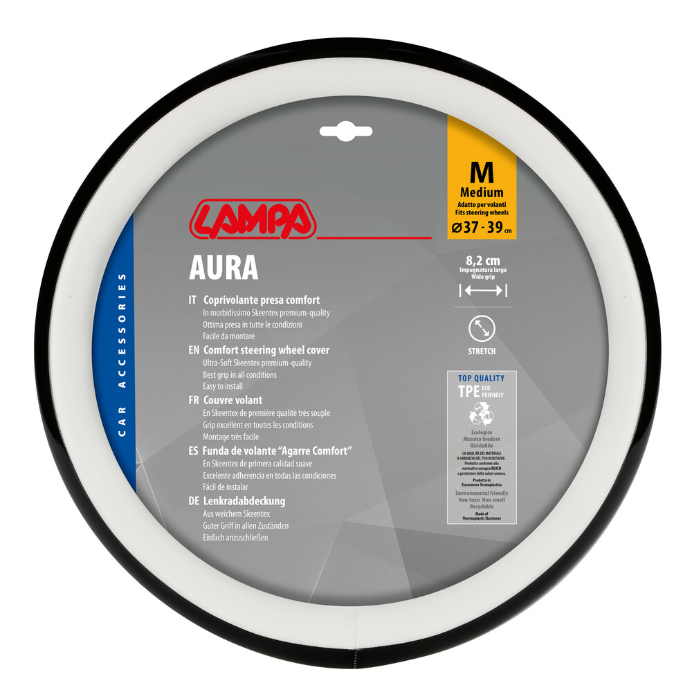 ΚΑΛΥΜΜΑ ΤΙΜΟΝΙΟΥ AURA (M) 37/39cm ΜΑΥΡΟ/ΛΕΥΚΟ ΟΙΚΟΛΟΓΙΚΟ ΔΕΡΜΑ ΑΟΣΜΟ (ΠΑΧΟΣ 8,2cm) LAMPA