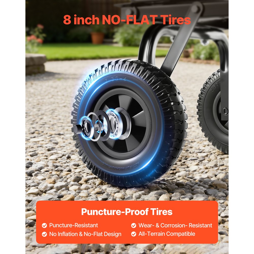 Απορρίμματα Γρήγορης Ανύψωσης: Κατασκευασμένα με σχεδιασμό γρήγορης κλίσης, τα καρότσια μας ρίχνουν υλικό τη στιγμή που σηκώνετε τον δίσκο, επιτρέποντας στο υγρό χώμα, τα φύλλα και τα υπολείμματα να γλιστρούν εύκολα έξω. Μειώνει την προσπάθεια στην αυλή ή στις γεωργικές εργασίες, ώστε να μπορείτε να κάνετε εργασίες με σταθερή και αποτελεσματική ροή. Ομαλή κύλιση εδάφους: Εξοπλισμένο με τροχούς PU 8"/203,2 mm που δεν ξεχειλίζουν, αυτό το καρότσι κήπου χειρίζεται γρασίδι, λάσπη και χαλίκι με σταθερή ροή. Ο δίσκος PP και το πλαίσιο με αντισκωριακή επεξεργασία παραμένουν ανθεκτικά σε μεταβαλλόμενη εξωτερική χρήση, προσφέροντας αξιόπιστη κίνηση για συνεχείς εργασίες αυλής ή χωραφιού. Υψηλή Αντοχή σε Χωρητικότητα: Το καρότσι κήπου και το βαγόνι μας μπορούν να μεταφέρουν έως και 181 κιλά χώματος, καυσόξυλων, χαλικιού ή καλλιεργειών. Μεταφέρουν περισσότερα σε μία διαδρομή, μειώνοντας τις επαναλαμβανόμενες μεταφορές και προσφέροντας ομαλότερη ροή εργασίας στον κήπο ή το αγρόκτημα με σταθερό χειρισμό σε όλες τις καθημερινές εργασίες. Υποστήριξη ομαλής περιστροφής: Με λαβή που περιστρέφεται 90° και τροχούς 180°, αυτό το καρότσι απορριμμάτων κήπου παραμένει εύκολο στην οδήγηση όταν είναι γεμάτο, επιτρέποντάς σας να στρίβετε, να βγαίνετε προς τα πίσω ή να μετακινείστε μέσα από στενά μονοπάτια με λιγότερη καταπόνηση. Χειρισμός ελαφρού δίσκου: Κατασκευασμένο με δίσκο PP, αυτό το καρότσι κηπουρικής VEVOR παραμένει ελαφρύ και εύχρηστο, προσφέροντας πιο ομαλό έλεγχο από τις μεταλλικές επιλογές και σταθερή αντοχή σε εξωτερικούς χώρους. Η βρωμιά, το γρασίδι και το λίπασμα ξεπλένονται με ένα γρήγορο ξέβγαλμα, μειώνοντας την προσπάθεια και κάνοντας την καθημερινή φροντίδα πιο χαλαρή.