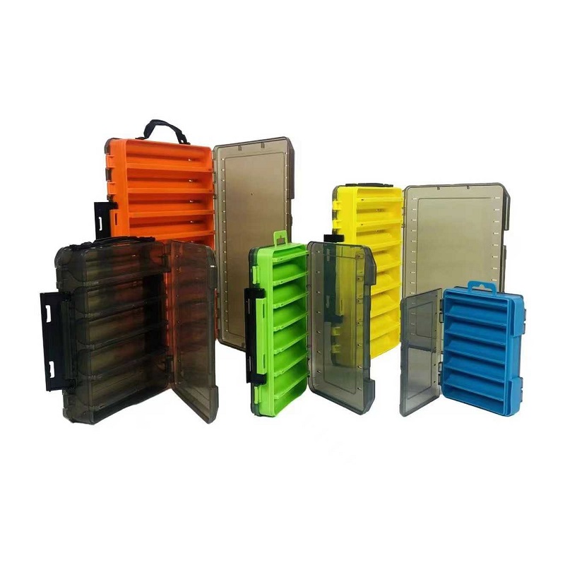 Πλαστικό κουτί-κασετίνα διπλής όψης, ιδανικό για την αποθήκευση και μεταφορά των αξεσουάρ αλιείας σας, με πολλαπλές θήκες και διαχωριστικά.
