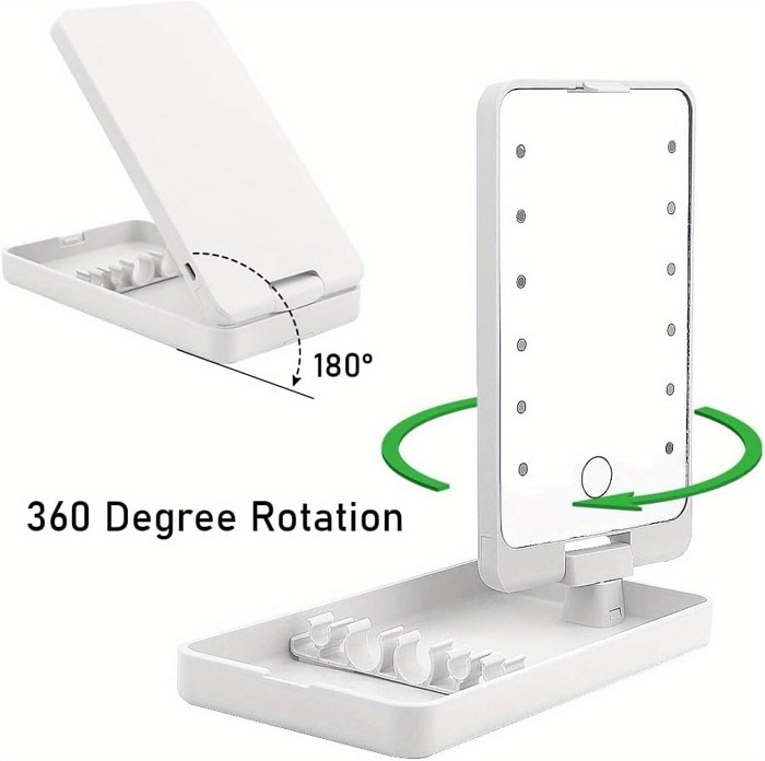 Ο καθρέπτης περιστρέφεται 360 μοίρες και διπλώνει από όποια πλευρά επιθυμείτε, ενώ κλείνει σε μορφή κασετίνας για να μπορείτε να το μεταφέρετε εύκολα παντού.