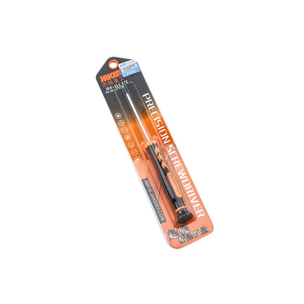 Κατσαβίδι Slotted 2.5mm από την JAKEMY. Ένα χρήσιμο εργαλείο για όλα τα εργαστήρια ηλεκτρονικών και τεχνικών smartphone. Χαρακτηριστικά: Κατσαβίδι μήκους 170mm Αντιολισθητική λαβή από PP&TRP Υλικά κατασκευής από κράμα CR-V Περιστρεφόμενη κεφαλή για εύκολη χρήση στο βίδωμα-ξεβίδωμα Μαγνητική μύτη DOA 14 ημερών