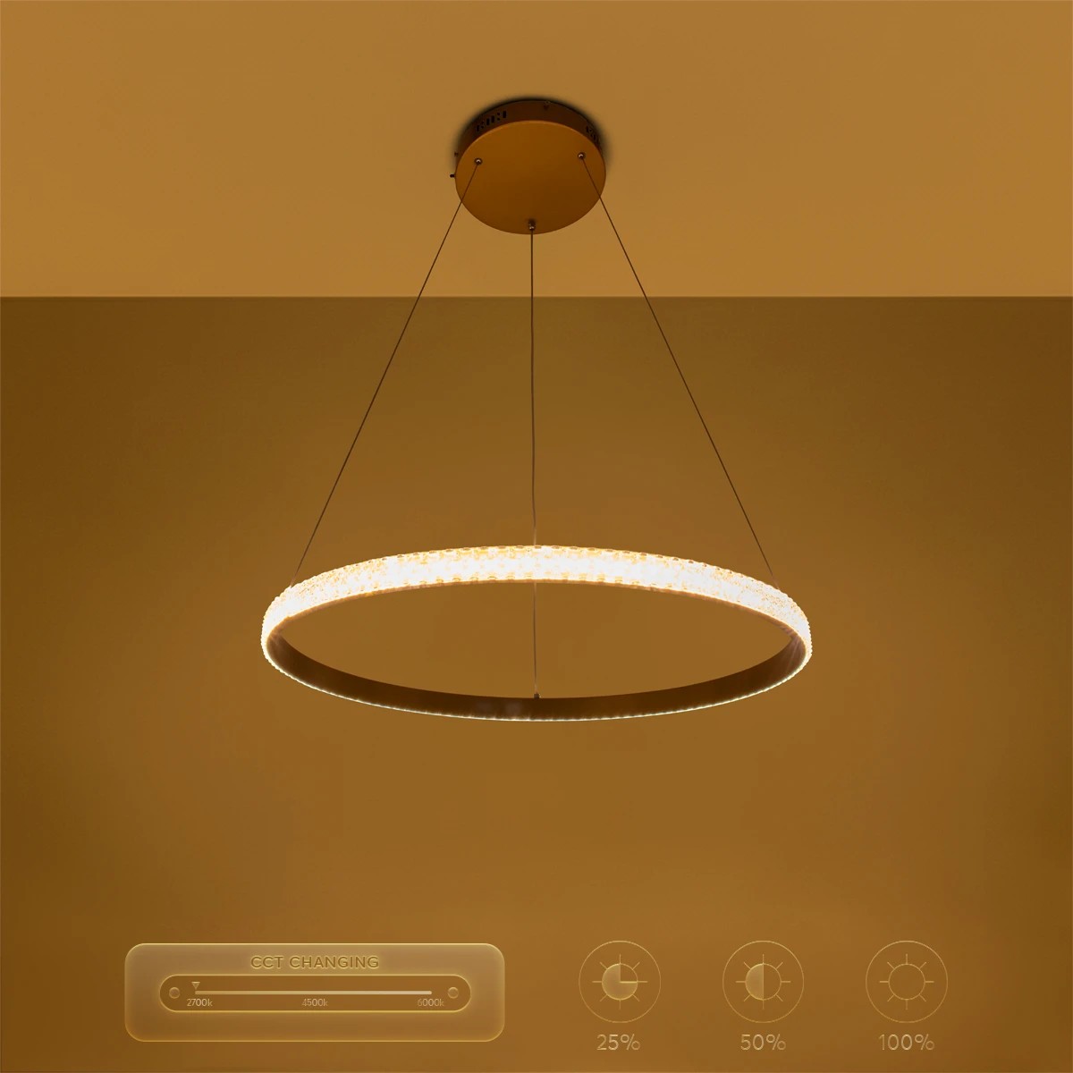 kelvo® DIAMOND KLV-101-0230 Κρεμαστό Φωτιστικό Οροφής LED 45W 4500lm 180° AC 220-240V IP20 Ρυθμιζόμενο Λευκό CCT με Χειριστήριο από 2700K έως 6000K Dimmable - Lumileds SMD Chip - Χρυσό Πλατίνα - Μ60 x Π60 x Υ3cm - 3 Χρόνια Εγγύηση