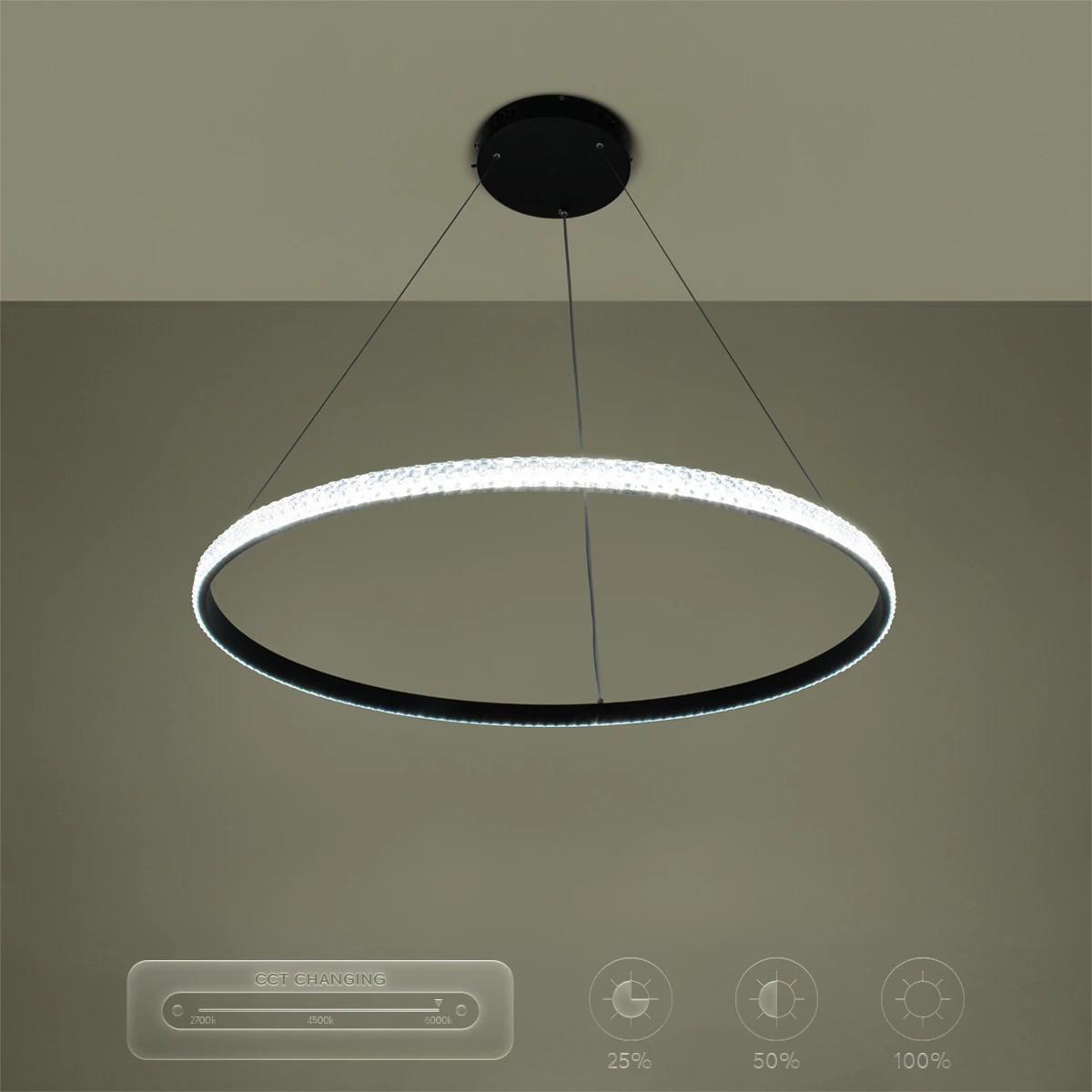 kelvo® DIAMOND KLV-101-0231 Κρεμαστό Φωτιστικό Οροφής LED 67W 6700lm 180° AC 220-240V IP20 Ρυθμιζόμενο Λευκό CCT με Χειριστήριο από 2700K έως 6000K Dimmable - Lumileds SMD Chip - Μαύρο Ματ - Μ80 x Π80 x Υ3cm - 3 Χρόνια Εγγύηση