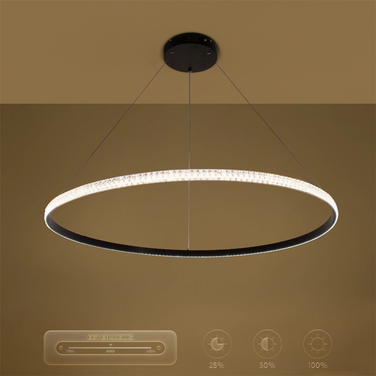 kelvo® DIAMOND KLV-101-0233 Κρεμαστό Φωτιστικό Οροφής LED 75W 7500lm 180° AC 220-240V IP20 Ρυθμιζόμενο Λευκό CCT με Χειριστήριο από 2700K έως 6000K Dimmable - Lumileds SMD Chip - Μαύρο Ματ - Μ100 x Π100 x Υ3cm - 3 Χρόνια Εγγύηση