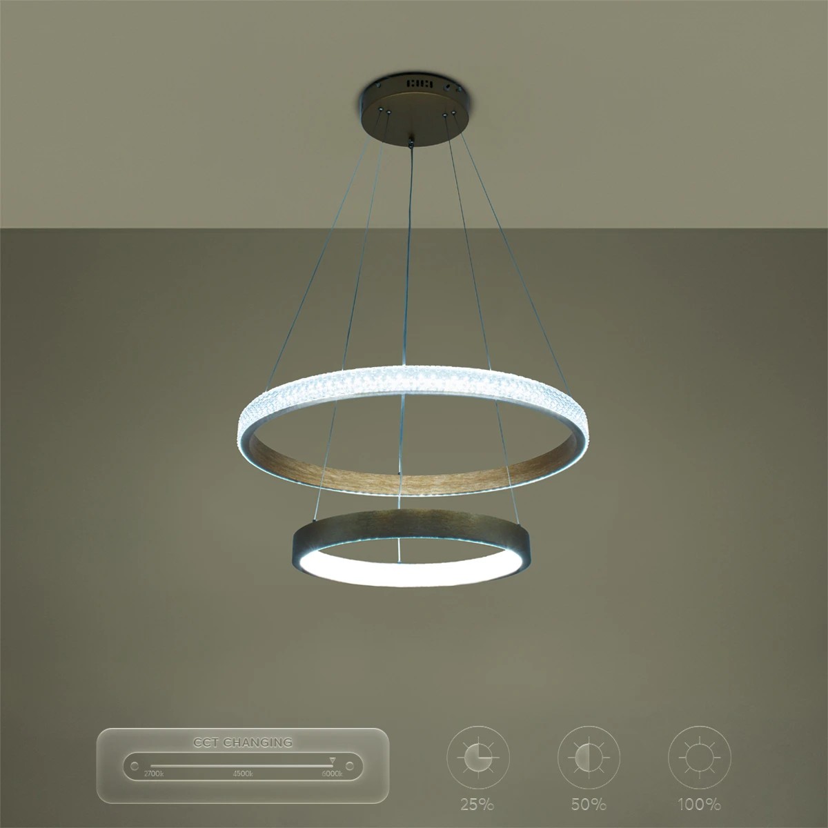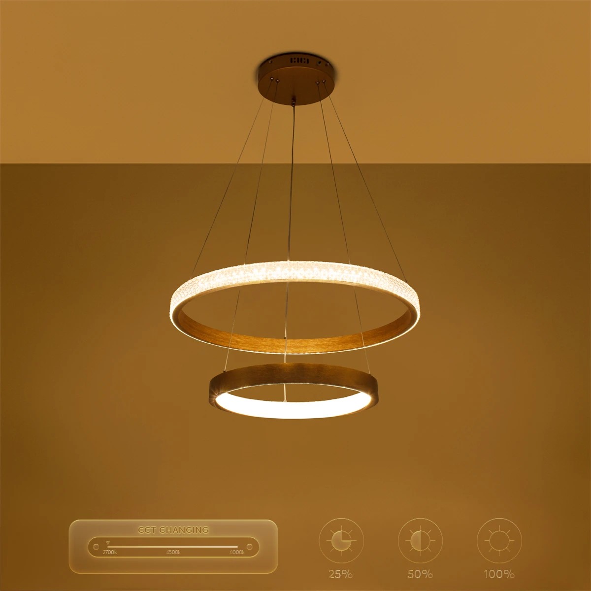 kelvo® DIAMOND KLV-101-0236 Κρεμαστό Φωτιστικό Οροφής LED 75W 7500lm 360° AC 220-240V IP20 Ρυθμιζόμενο Λευκό CCT με Χειριστήριο από 2700K έως 6000K Dimmable - Lumileds SMD Chip - Χρυσό Πλατίνα - Μ60 x Π60 x Υ40cm - 3 Χρόνια Εγγύηση