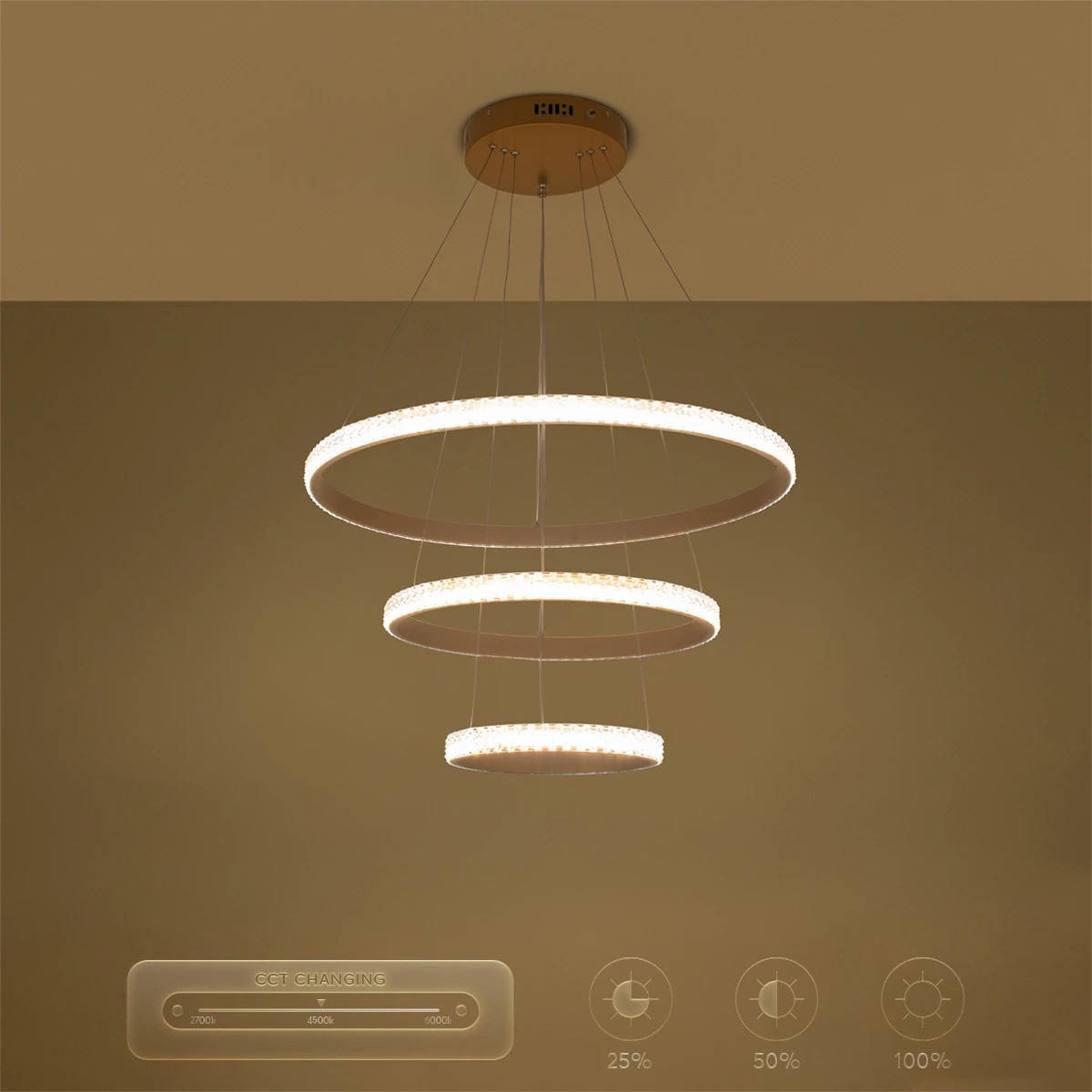 kelvo® DIAMOND KLV-101-0238 Κρεμαστό Φωτιστικό Οροφής LED 100W 10000lm 180° AC 220-240V IP20 Ρυθμιζόμενο Λευκό CCT με Χειριστήριο από 2700K έως 6000K Dimmable - Lumileds SMD Chip - Χρυσό Πλατίνα - Μ60 x Π60 x Υ60cm - 3 Χρόνια Εγγύηση
