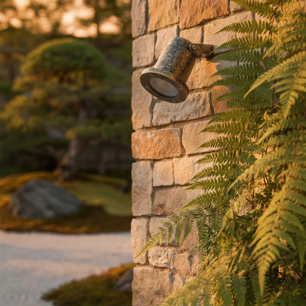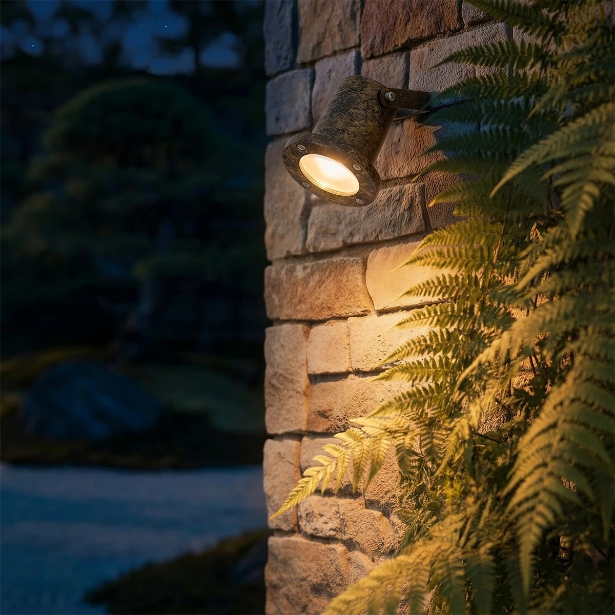 kelvo® GARDELINI KLV-101-0005-V2 Φωτιστικό Σποτ Τοίχου με Βάση για Λάμπα MR16 με Ντουί GU10 AC 220-240V Αδιάβροχο IP65 - Χρυσό Εφέ Σκουριάς Ματ - Μ10 x Π10 x Υ30cm