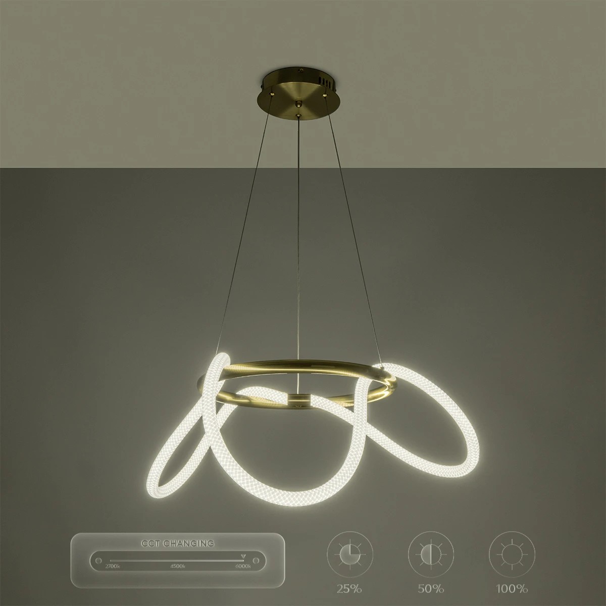 kelvo® GLOW KLV-101-0162 Κρεμαστό Φωτιστικό Οροφής LED 36W 3600lm 360° AC 220-240V IP20 Ρυθμιζόμενο Λευκό CCT με Χειριστήριο από 2700K έως 6000K Dimmable - Lumileds SMD Chip - Χρυσό Πλατίνα - Μ70 x Π70 x Υ40cm - 3 Χρόνια Εγγύηση