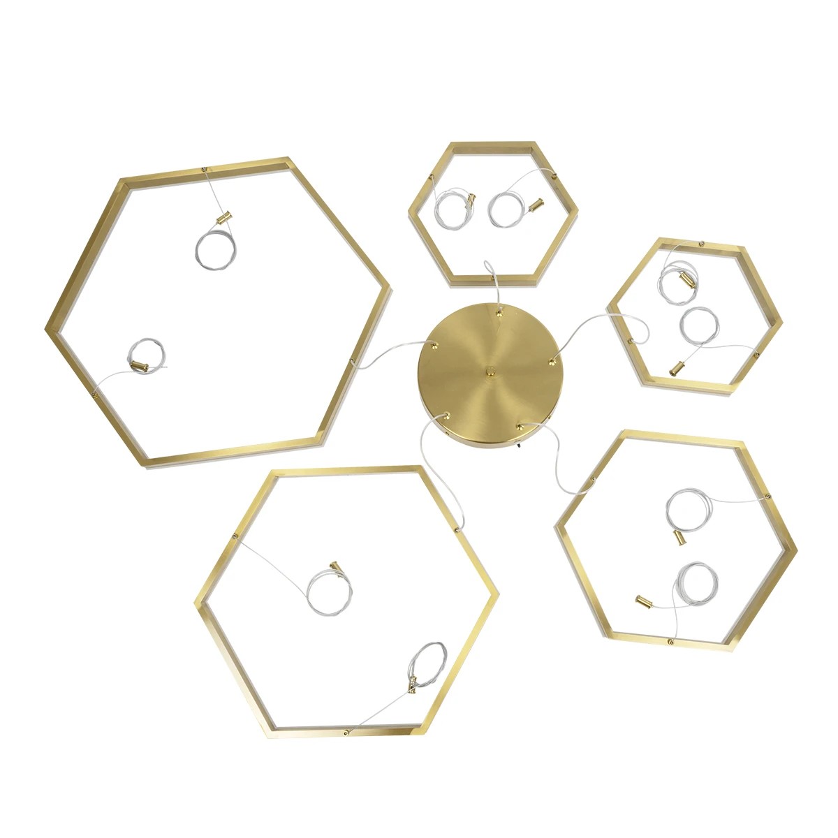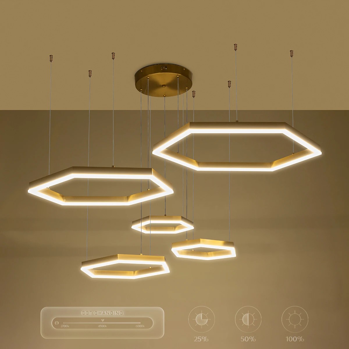 kelvo® LEXAGON KLV-101-0180 Κρεμαστό Φωτιστικό Οροφής LED 120W 12000lm 200° AC 220-240V IP20 Ρυθμιζόμενο Λευκό CCT με Χειριστήριο από 2700K έως 6000K Dimmable - Lumileds SMD Chip - Χρυσό Πλατίνα - Μ110 x Π90 x Υ110cm - 3 Χρόνια Εγγύηση