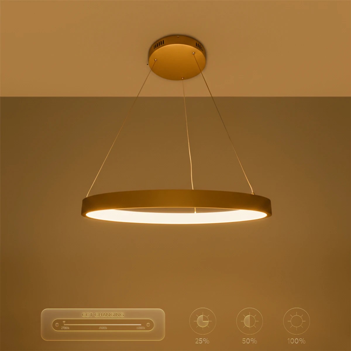 kelvo® NEMESIS KLV-101-0210 Κρεμαστό Φωτιστικό Οροφής LED 45W 4500lm 180° AC 220-240V IP20 Ρυθμιζόμενο Λευκό CCT με Χειριστήριο από 2700K έως 6000K Dimmable - Lumileds SMD Chip - Χρυσό Πλατίνα - Μ60 x Π60 x Υ4cm - 3 Χρόνια Εγγύηση