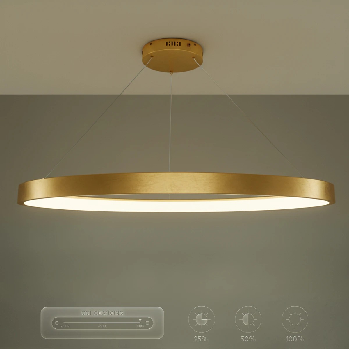 kelvo® NEMESIS KLV-101-0213 Κρεμαστό Φωτιστικό Οροφής LED 67W 6700lm 180° AC 220-240V IP20 Ρυθμιζόμενο Λευκό CCT με Χειριστήριο από 2700K έως 6000K Dimmable - Lumileds SMD Chip - Χρυσό Πλατίνα - Μ80 x Π80 x Υ4cm - 3 Χρόνια Εγγύηση