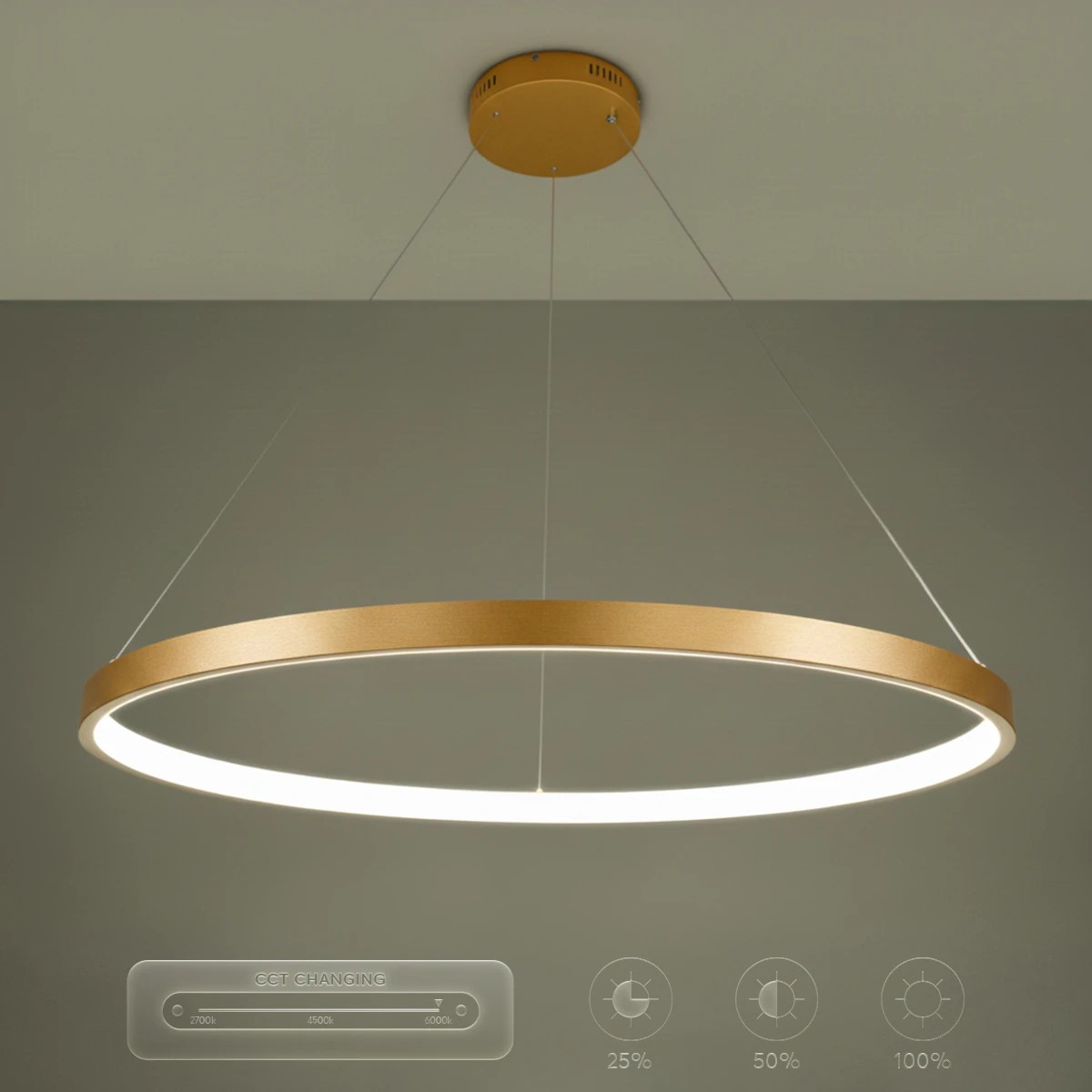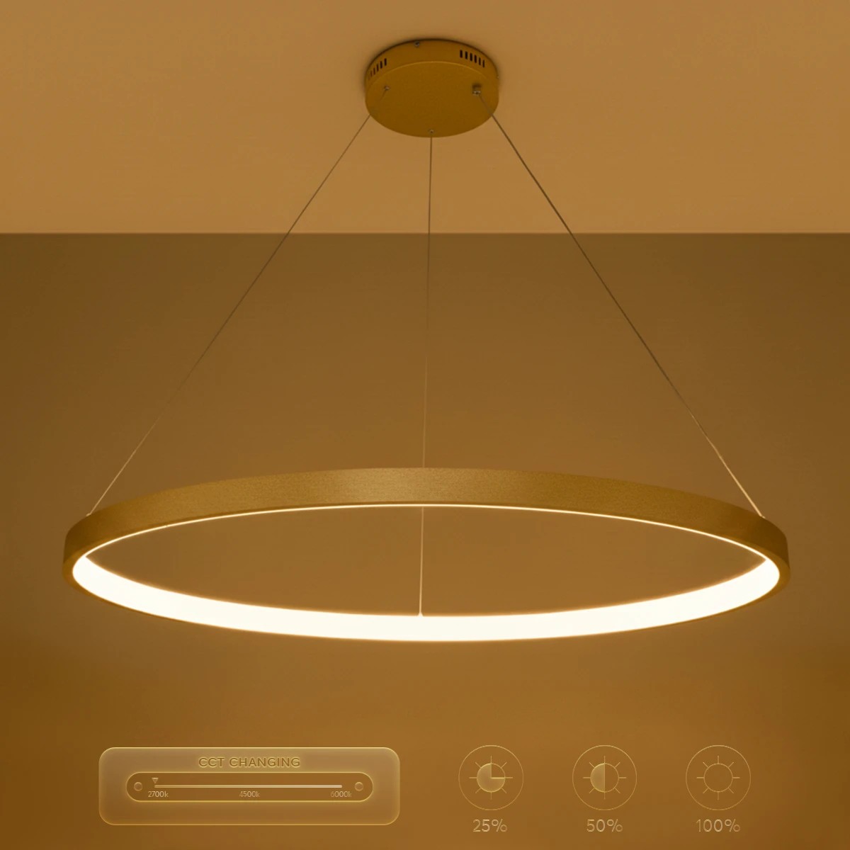 kelvo® NEMESIS KLV-101-0216 Κρεμαστό Φωτιστικό Οροφής LED 75W 7500lm 180° AC 220-240V IP20 Ρυθμιζόμενο Λευκό CCT με Χειριστήριο από 2700K έως 6000K Dimmable - Lumileds SMD Chip - Χρυσό Πλατίνα - Μ100 x Π100 x Υ4cm - 3 Χρόνια Εγγύηση