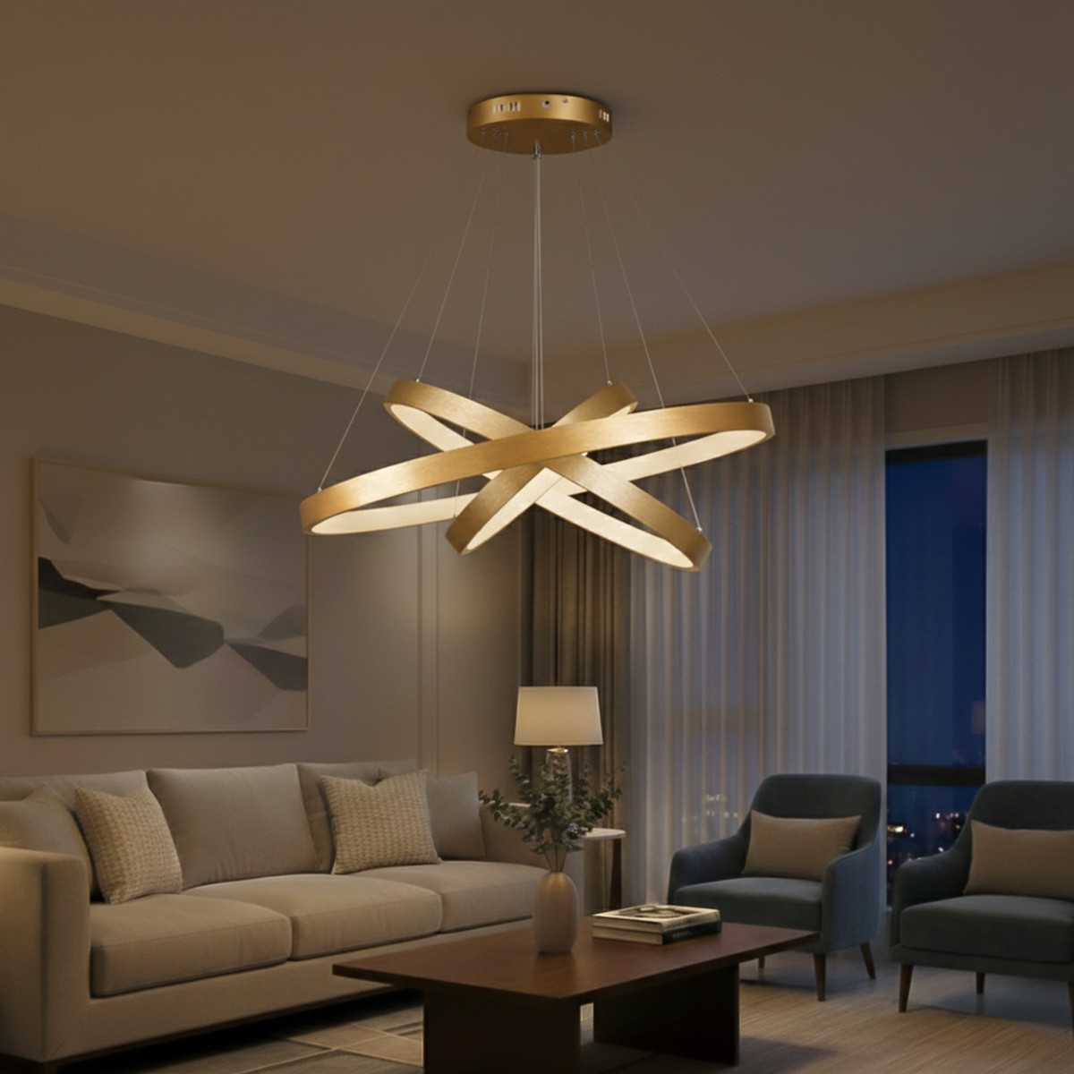 kelvo® NEMESIS KLV-101-0222-V2 Κρεμαστό Φωτιστικό Οροφής LED 120W 12000lm 180° AC 220-240V IP20 Ρυθμιζόμενο Λευκό CCT με Χειριστήριο από 2700K έως 6000K Dimmable - Lumileds SMD Chip - Χρυσό Πλατίνα - Μ80 x Π80 x Υ80cm - 3 Χρόνια Εγγύηση