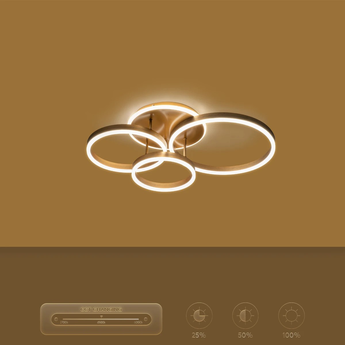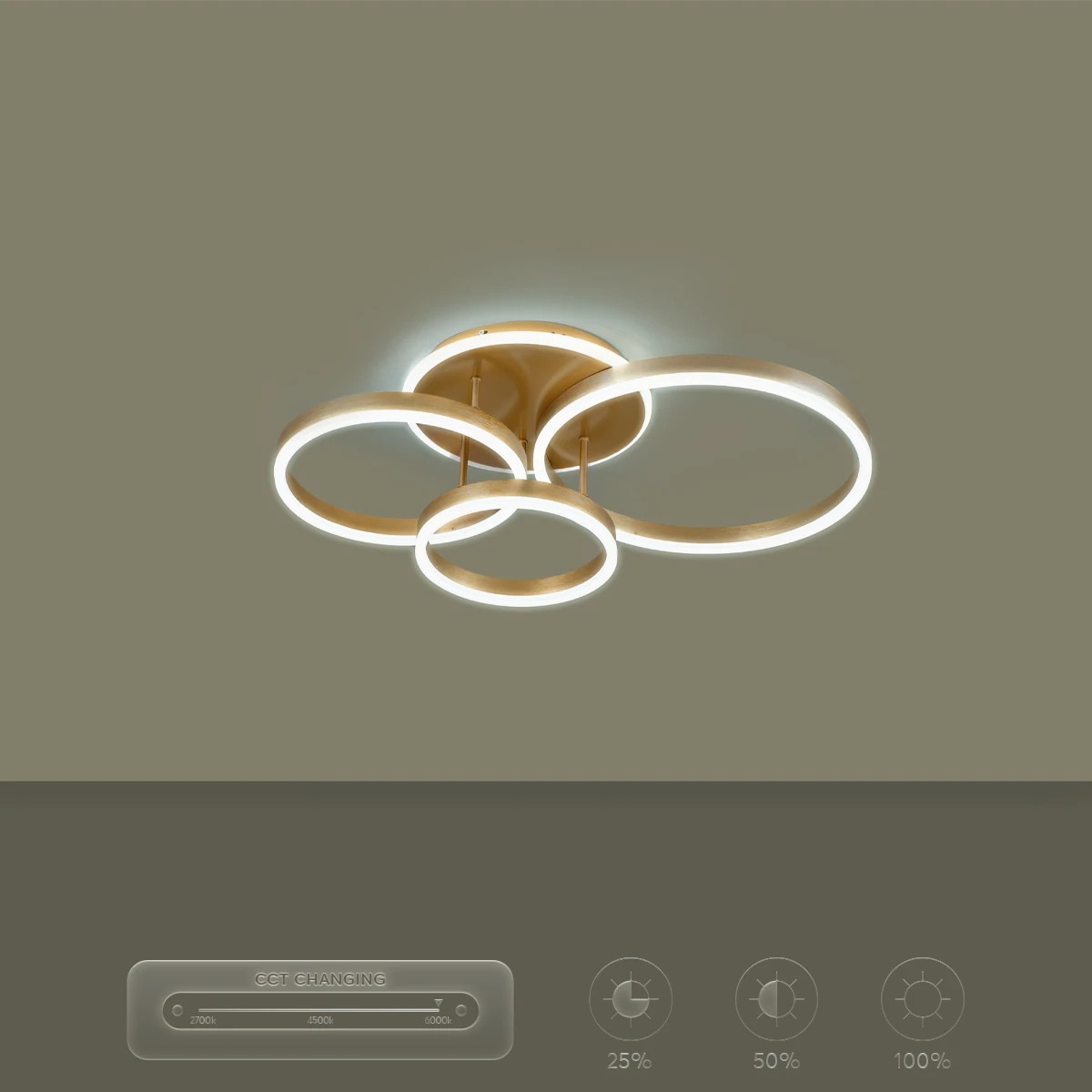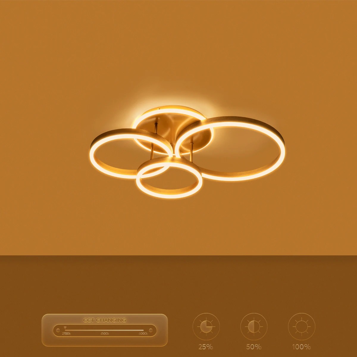 kelvo® VENOM KLV-101-0186 Φωτιστικό Οροφής LED 100W 10000lm 360° AC 220-240V IP20 Ρυθμιζόμενο Λευκό CCT με Χειριστήριο από 2700K έως 6000K Dimmable - Lumileds SMD Chip - Χρυσό Πλατίνα - Μ70 x Π40 x Υ16cm - 3 Χρόνια Εγγύηση