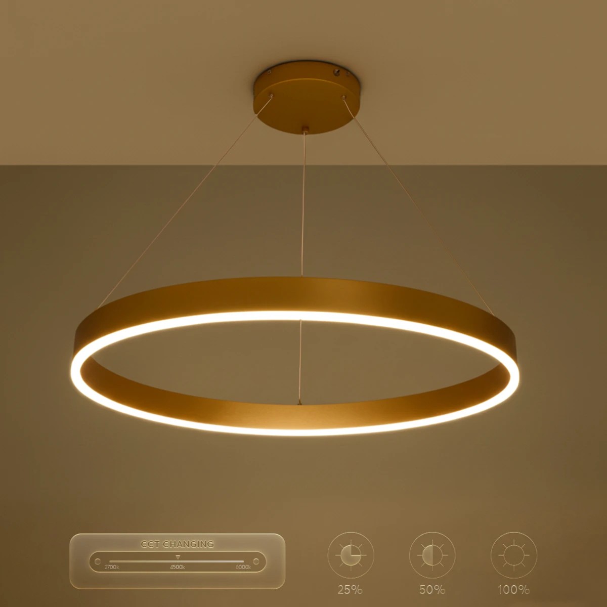 kelvo® VENOM KLV-101-0192 Κρεμαστό Φωτιστικό Οροφής LED 67W 6700lm 120° AC 220-240V IP20 Ρυθμιζόμενο Λευκό CCT με Χειριστήριο από 2700K έως 6000K Dimmable - Lumileds SMD Chip - Χρυσό Πλατίνα - Μ80 x Π80 x Υ6.5cm - 3 Χρόνια Εγγύηση