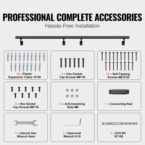 Πλήρη αξεσουάρ: Αυτή η κουπαστή σκάλας συνοδεύεται από εξειδικευμένα αξεσουάρ, εξασφαλίζοντας μια απλή και βολική διαδικασία εγκατάστασης. Δεν χρειάζεται να αγοράσετε πρόσθετα εξαρτήματα ή εργαλεία. Απλώς ακολουθήστε τις οδηγίες και μπορείτε να εγκαταστήσετε εύκολα την κουπαστή, εξοικονομώντας χρόνο και προσπάθεια.