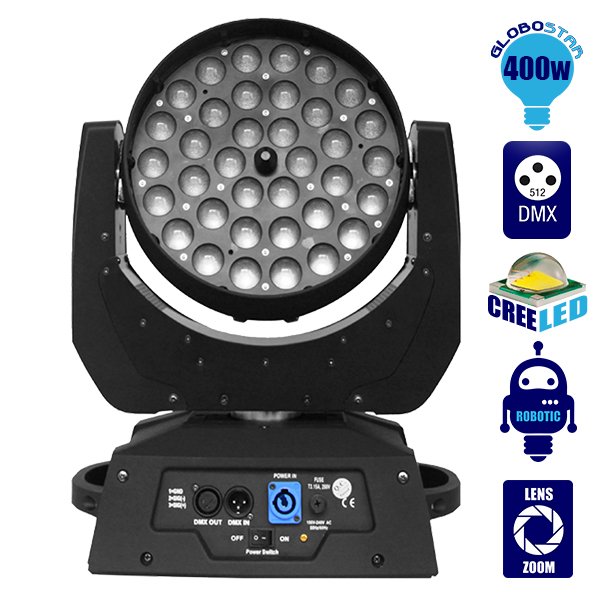 Κινούμενη Ρομποτική Κεφαλή WASH 36 x 10 Watt CREE LED RGBW Zoom 12°-75° Globostar