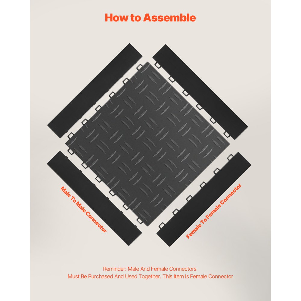 Προστασία άκρων πατακιών δαπέδου: Αυτά τα κιτ μεταβατικών άκρων δαπέδου προστατεύουν τα αναβαθμισμένα πατάκια γκαράζ VEVOR PP με 6 κλειδώματα, μειώνοντας τον διαχωρισμό, τη μετατόπιση, το τσαλάκωμα και τη συσσώρευση σκόνης ή νερού. Ανθεκτική κατασκευή: Διαθέτοντας μια ανάγλυφη επιφάνεια που αυξάνει την τριβή, αυτά τα αλληλοσυνδεόμενα αρθρωτά κομμάτια δαπέδου γκαράζ πάχους 12,1 mm αντιστέκονται στο σκίσιμο και την ολίσθηση. Το υλικό PP παρέχει αντοχή στο νερό και το λάδι για μακροχρόνια χρήση. Συμβατό με την επωνυμία VEVOR: Τα προστατευτικά άκρων των πατακιών μας έχουν σχεδιαστεί ειδικά για τα αναβαθμισμένα πατάκια δαπέδου 6-κλειδωμάτων VEVOR PP. Κάθε σετ περιλαμβάνει 15 θηλυκούς συνδετήρες, οι οποίοι συνιστάται να χρησιμοποιούνται μαζί με αρσενικούς συνδετήρες για σωστή εγκατάσταση. Οδηγός εγκατάστασης: Μπορείτε να επιλέξετε κομμάτια άκρης πατακιού δαπέδου με βάση την περιοχή κάλυψης. Συνήθως, κάθε πατάκι PP 6-Lock απαιτεί 2 αρσενικά και 2 θηλυκά κομμάτια άκρης. Ένα σετ 15 θηλυκών κομματιών άκρης παρέχει προστασία για 15 θηλυκούς συνδετήρες. Ευρείες εφαρμογές: Ιδανικό για γκαράζ, εμπορικούς διαδρόμους, αποθήκες ή εργαλειοθήκες. Αυτό το κιτ άκρων πλακιδίων δαπέδου γκαράζ ελαχιστοποιεί τους κινδύνους πτώσης από τις διαφορές ύψους και προστατεύει τα χαλάκια από τη συσσώρευση σκόνης και νερού.