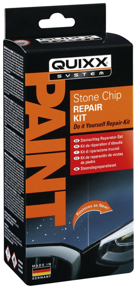 Χάρη στο QUIXX Paint Stone Chip Repair-Kit, τα αντιαισθητικά χτυπήματα από πέτρες και τα μικρά θραύσματα στο μπροστινό μέρος του οχήματος εξαφανίζονται σε χρόνο μηδέν.