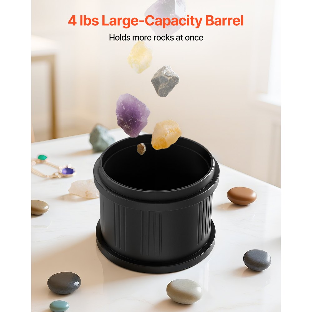 Κινητήρας άμεσης κίνησης χωρίς ιμάντα: Αυτό το κιτ ανατροπής πέτρας χρησιμοποιεί κινητήρα άμεσης κίνησης χαμηλής τάσης για ομαλότερο και πιο αποτελεσματικό στίλβωμα χωρίς μετάδοση κίνησης με ιμάντα, εξαλείφοντας τη φθορά και την αντικατάσταση του ιμάντα, μειώνοντας παράλληλα το κόστος συντήρησης. Λειτουργεί στα ≤35 dB, επιτρέποντάς σας να απολαμβάνετε μια ήσυχη και άνετη δημιουργική εμπειρία. Ομοιόμορφα Αποτελέσματα Γυάλισμα: Αυτό το κιτ γυαλίσματος πετρωμάτων χρησιμοποιεί προηγμένες τεχνικές για να εξασφαλίσει λείες, στρογγυλεμένες επιφάνειες μετά το γυάλισμα, επιτρέποντας σε κάθε πέτρα να αποκαλύψει τη μοναδική της λάμψη. Κατάλληλο τόσο για αρχάριους όσο και για λάτρεις, κάνει το γυάλισμα εύκολο και διασκεδαστικό. ΣΗΜΕΙΩΣΗ: οι ακατέργαστες πέτρες ΔΕΝ περιλαμβάνονται και πρέπει να προετοιμαστούν ξεχωριστά. Ευέλικτη ρύθμιση: Ο κύλινδρος πέτρας μας διαθέτει χρονοδιακόπτη 1 έως 9 ημερών και 4 επίπεδα ταχύτητας που κυμαίνονται από 75 σ.α.λ. έως 120 σ.α.λ., καλύπτοντας τις ανάγκες στίλβωσης για διαφορετικά υλικά και στάδια. Με προστασία υπερφόρτωσης και μνήμη απενεργοποίησης, συνεχίζει αυτόματα τον υπόλοιπο κύκλο μετά από διακοπές. Ο σχεδιασμός σταθερής ταχύτητας εξασφαλίζει πιο ομοιόμορφα και συνεπή αποτελέσματα. Υψηλή χωρητικότητα φόρτωσης: Αυτό το γυαλιστικό πετρωμάτων διαθέτει βαρέλι βαρέως φορτίου 4 λίβρες που συγκρατεί περισσότερες πέτρες ταυτόχρονα, βελτιώνοντας σημαντικά την απόδοση στίλβωσης. Η μεγάλη χωρητικότητα εξοικονομεί χρόνο, εξασφαλίζει ομοιόμορφο στίλβωμα και μειώνει τις συχνές αναπληρώσεις για ευκολότερη λειτουργία. Εύκολο στη χρήση: Αυτό το ποτήρι πέτρας διαθέτει απλό σχεδιασμό και διαισθητική λειτουργία, χωρίς να απαιτούνται ειδικές δεξιότητες για να ξεκινήσετε. Ιδανικό για οικιακές κατασκευές ή για έργα γονέα-παιδιού, κάνει τη μετατροπή από ακατέργαστες πέτρες σε γυαλισμένες πέτρες διασκεδαστική και ικανοποιητική.