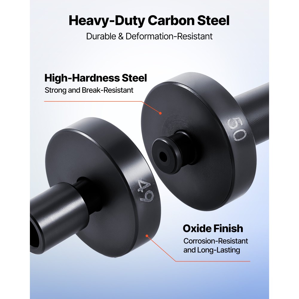 Πλήρη μεγέθη: Το κιτ πρέσας ρουλεμάν μας χειρίζεται διάφορα μεγέθη εργασιών αποσυναρμολόγησης ρουλεμάν. Είναι εξοπλισμένο με 52 τεμάχια συνήθως χρησιμοποιούμενων μεγεθών μανικιών δίσκου και πολλαπλά αξεσουάρ συναρμολόγησης για ολοκληρωμένα εργαλεία. Ανθεκτικότητα σε βαριά χρήση: Το εργαλείο κατσαβιδιού είναι κατασκευασμένο από χάλυβα υψηλής σκληρότητας, με παχιά χιτώνια δίσκου που αντέχουν σε δυνατά χτυπήματα από σφυριά ή σμίλες. Το σετ κατσαβιδιών μας διαθέτει οξειδωμένη μαύρη επίστρωση για αντοχή στη σκουριά και τη φθορά και ανθεκτικότητα. Λαβή από παχύ ατσάλι: Το κιτ κατσαβιδιού στεγανοποίησης ρουλεμάν μας διαθέτει μια μακριά και παχύτερη λαβή που μεταδίδει αποτελεσματικά τη δύναμη κρούσης χωρίς παραμόρφωση. Η λαβή έχει αντιολισθητικά σχέδια για ασφαλές κράτημα που δεν χαλαρώνει. Λειτουργία χωρίς ζημιές: Μπορείτε να συναρμολογήσετε μανίκια δίσκου χρησιμοποιώντας αξεσουάρ. Οι βίδες ασφαλίζουν με ασφάλεια τα μανίκια και οι γυαλισμένες άκρες αποτρέπουν την πρόκληση ζημιάς στα ρουλεμάν και σε άλλα εξαρτήματα. Το σετ κατσαβιδιών ρουλεμάν μας αντικαθιστά αναποτελεσματικές, ισχυρές μεθόδους όπως σφυριά ή σμίλες. Εύκολη αποθήκευση με εργαλειοθήκη: Για την επίλυση προβλημάτων αποθήκευσης εργαλείων, το κιτ στεγανοποίησης παρέχει ένα υψηλής αντοχής, αδιάβροχο πλαστικό κουτί με εσωτερικές σημάνσεις μεγέθους. Επιτρέπει την οργανωμένη αποθήκευση και την σαφή αναγνώριση, εξασφαλίζοντας αξιόπιστη αποθήκευση και φορητότητα.