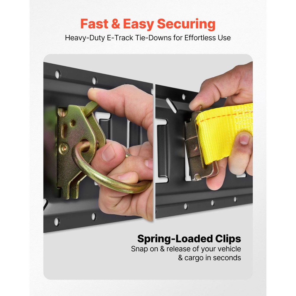Ασφαλής μεταφορά: Η βάση από κράμα χάλυβα ασφαλίζει έως και 1.500 λίβρες φορτίου σε γραμμές E. Η σταθερή στήριξη διατηρεί τον εξοπλισμό σας στη θέση του σε ανώμαλους δρόμους και μεγάλα ταξίδια. Ανθεκτικότερες ράγες, ευέλικτη διάταξη: Τέσσερις ανθεκτικές, ανθεκτικές στη σκουριά ράγες E-track συνδυάζονται με δακτυλίους D/O, καπάκια άκρων και μονές υποδοχές. Οι ράγες παρέχουν 12 σημεία αγκύρωσης για την τοποθέτηση φορτίων με περίεργο σχήμα και τη μείωση των γρατζουνιών. Εύκολη εγκατάσταση για νέους χρήστες: Τα κλιπ με ελατήριο και το υλικό που κουμπώνει εγκαθίστανται σε δευτερόλεπτα. Οι ιμάντες με καστάνια του συστήματος ράγας E-track σάς επιτρέπουν να ρυθμίζετε γρήγορα την τάση, ώστε να ασφαλίζετε το φορτίο χωρίς εργαλεία. Ανθεκτικότητα σε όλες τις καιρικές συνθήκες: Ο βιομηχανικός ιμάντας από πολυεστέρα και η ραφή με διαμάντια είναι ανθεκτικά στη φθορά και την ελαστικότητα. Το αδιάβροχο, ανθεκτικό στη σκουριά κιτ ραγών E-track αποδίδει σε συνθήκες βροχής, σκόνης και υγρασίας. Δέσιμο & Οργάνωση: Αυτό το σύστημα πρόσδεσης τρέιλερ ασφαλίζει βαριά φορτία για μεταφορά και οργανώνει τον καθημερινό εξοπλισμό. Τα γκαράζ, τα κλειστά τρέιλερ και τα φορτηγά εργασίας παραμένουν τακτοποιημένα με εργαλεία, καλώδια και ανταλλακτικά στη θέση τους.