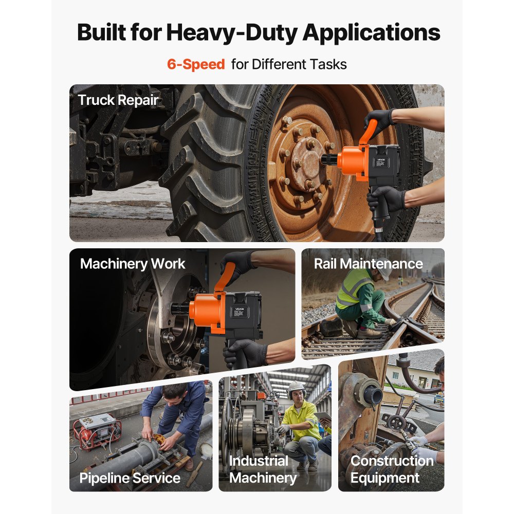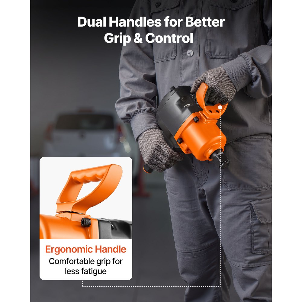 Ισχυρή ροπή: Αυτό το κρουστικό κλειδί VEVOR 1" με κίνηση αέρα διαθέτει μηχανισμό διπλού κρούσης, που παρέχει ροπή σπασίματος παξιμαδιών έως και 1200 ft-lbs (1626N.m). Χαλαρώνει εύκολα τα επίμονα παξιμάδια και αντιμετωπίζει πιο βαριές εργασίες συναρμολόγησης ή αποσυναρμολόγησης. Εύκολος έλεγχος ροπής: Εξοπλισμένο με ελεύθερη ταχύτητα 4600 στροφών και ρύθμιση ροπής 6 ταχυτήτων (3 ταχύτητες προς τα εμπρός, 3 ταχύτητες προς τα πίσω), αυτό το πιστόλι κρούσης αέρα σάς επιτρέπει να αλλάζετε εύκολα λειτουργίες και να ρυθμίζετε την απόδοση ροπής για διάφορες εργασίες επισκευής αυτοκινήτων. Εύκολο στη λειτουργία: Σχεδιασμένο με διπλές λαβές και εργονομική αντιολισθητική λαβή, αυτό το κρουστικό κλειδί παρέχει βελτιωμένο έλεγχο και πιο σταθερή και άνετη λειτουργία. Λιγότεροι κραδασμοί και κόπωση των χεριών για εκτεταμένη χρήση. Ισχυρό και ανθεκτικό: Το περίβλημα από κράμα αλουμινίου και ο ενισχυμένος άκμονας από κράμα προσφέρουν εξαιρετική αντοχή και ανθεκτικότητα για δύσκολες εργασίες. Θυμηθείτε να εφαρμόσετε λιπαντικό λάδι πριν από τη χρήση για να παρατείνετε τη διάρκεια ζωής του εργαλείου (το λάδι δεν περιλαμβάνεται) Κατασκευασμένο για βαριές εργασίες: Το πιστόλι κρούσης αέρα VEVOR 1 ίντσας παρέχει ισχυρή ροπή για χαλάρωση ή σφίξιμο μπουλονιών και παξιμαδιών. Ιδανικό για βαριές επισκευές και συντήρηση αυτοκινήτων σε φορτηγά, ρυμουλκούμενα, λεωφορεία και γεωργικά μηχανήματα.