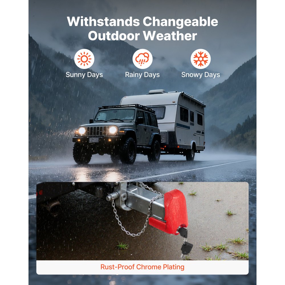 Καθολικό μέγεθος: Αυτή η κλειδαριά σφαιρικού κοτσαδόρου διαθέτει καθολική εφαρμογή για ζεύκτες 1-7/8, 2 ιντσών και 2-5/16 ιντσών, καλύπτοντας τις ανάγκες πολλαπλών ρυμουλκούμενων. Επιβεβαιώστε το μέγεθος του ζεύκτη σας πριν από την αγορά για να βεβαιωθείτε ότι η κλειδαριά ταιριάζει με το ρυμουλκούμενο σας. Ασφάλεια κατά της αφαίρεσης: Κατασκευασμένη από αμάξωμα από κράμα αλουμινίου, αυτή η κλειδαριά ρυμούλκησης αντέχει σε κρούσεις και παραβιάσεις για μακροχρόνια σταθερή χρήση. Η δομή πυρήνα από κράμα ψευδαργύρου αποτρέπει την αφαίρεση, ενισχύοντας σημαντικά την προστασία από κλοπή, διατηρώντας το ρυμούλκημά σας ασφαλές. Ανθεκτικότητα στη σκουριά: Αυτός ο σφαιρικός κοτσαδόρος με κλειδαριές τρέιλερ διαθέτει επιφάνεια ηλεκτροστατικής βαφής με αντοχή στη σκουριά και τη διάβρωση, αντέχοντας στις εξωτερικές καιρικές συνθήκες. Μπορεί να διατηρήσει σταθερή απόδοση κάτω από καυτό ήλιο, δυνατή βροχή ή παγωμένο χιόνι. Εύκολη λειτουργία: Η λειτουργία κλειδώματος με μπίλια ρυμούλκησης δεν απαιτεί εργαλεία. Απλώς πρέπει να τοποθετήσετε το σώμα της κλειδαριάς στον σύνδεσμο, να το ρυθμίσετε στη σωστή θέση και να χρησιμοποιήσετε τα πλήκτρα για γρήγορο κλείδωμα ή ξεκλείδωμα. Περιλαμβάνει τρία πλήκτρα για βολική χρήση οποιαδήποτε στιγμή. Ευρεία εφαρμογή: Αυτή η κλειδαριά ρυμουλκούμενου γενικής χρήσης ταιριάζει σε διάφορους τύπους ρυμουλκούμενων, όπως ρυμουλκούμενα, τροχόσπιτα, οχήματα εκτός δρόμου και σκάφη. Είτε πρόκειται για κάμπινγκ με τροχόσπιτα, ρυμούλκηση θαλάσσης είτε για μεταφορά φορτίου, προσφέρει σταθερή και αξιόπιστη απόδοση κλειδώματος.