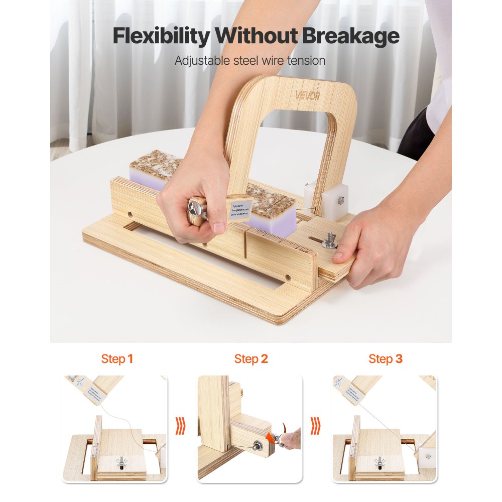 Ρυθμιζόμενο πάχος: Ο κόφτης σαπουνιού διαθέτει σχεδιασμό ρυθμιζόμενου πάχους που επιτρέπει την εύκολη ρύθμιση για ακριβείς, ομοιόμορφες ράβδους διαφορετικού πάχους. Ιδανικός για την κατασκευή σαπουνιών κατά παραγγελία, εξασφαλίζει ακριβείς κοπές, μειώνοντας παράλληλα τη σπατάλη υλικών. Ρυθμιζόμενη τάση σύρματος: Αυτός ο κόφτης σαπουνιού διαθέτει λειτουργία ρυθμιζόμενης τάσης σύρματος, εξασφαλίζοντας τη σταθερότητα και την ανθεκτικότητα του σύρματος κοπής. Πείτε αντίο στο σπάσιμο του σύρματος και ολοκληρώστε την κοπή σαπουνιού χωρίς κόπο, δημιουργώντας ιδανικό τελικό προϊόν. Υλικό ξύλου υψηλής ποιότητας: Κατασκευασμένο από φυσικό ξύλο με όμορφα, φυσικά νερά, αυτό το σαπωνόξυλο είναι πρακτικό και διακοσμητικό. Η λεία ξύλινη επιφάνεια αποτρέπει την ολίσθηση κατά τη χρήση, διευκολύνοντας την κοπή όλων των ειδών σαπουνιού. Βοηθά στη διατήρηση της στεγνότητας του σαπουνιού. Εύκολη κοπή: Τα αιχμηρά μεταλλικά σύρματα κάνουν την κοπή πιο γρήγορη και καθαρότερη. Αυτό σημαίνει ότι μπορείτε να φτιάχνετε αποτελεσματικά σαπούνι ή άλλα χειροποίητα προϊόντα χωρίς ανομοιόμορφες κοπές. Επιπλέον, τα 10 σύρματα που περιλαμβάνονται καλύπτουν τις ανάγκες διαφόρων σαπωνοποιών. Μια ιδανική επιλογή δώρου: Δημιουργήστε μοναδικά, εξατομικευμένα δώρα για την οικογένεια και τους φίλους σας με αυτό το εργαλείο παρασκευής σαπουνιού! Προσθέστε το όνομά τους, επιλέξτε τα αγαπημένα τους χρώματα ή αρώματα και χαρίστε τους μια υπέροχη και αξέχαστη έκπληξη.