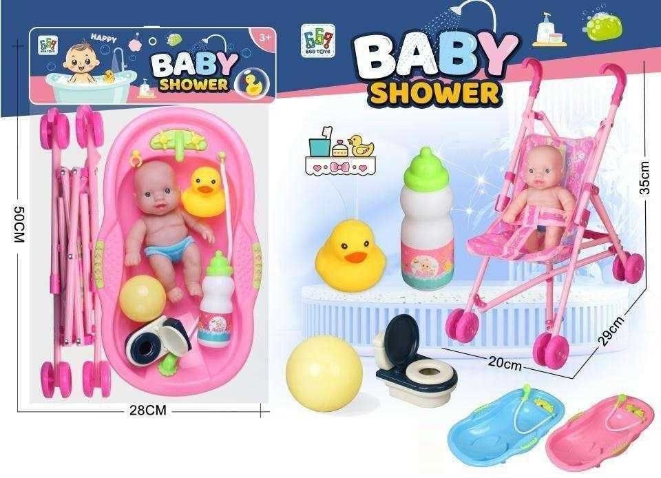 Κούκλα μωρό με σετ μπάνιου και καροτσάκι - 669-702B1 - 215562