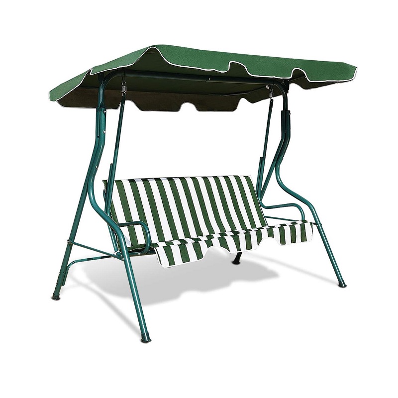 Κούνια κήπου τριθέσια με ισχυρό μεταλλικό σκελετό και προστατευτική τέντα. Ιδανική για απολαυστικές στιγμές χαλάρωσης στο μπαλκόνι σας, την βεράντα, τον κήπο, το εξοχικό σας. Αντοχή βάρους έως 200kg.