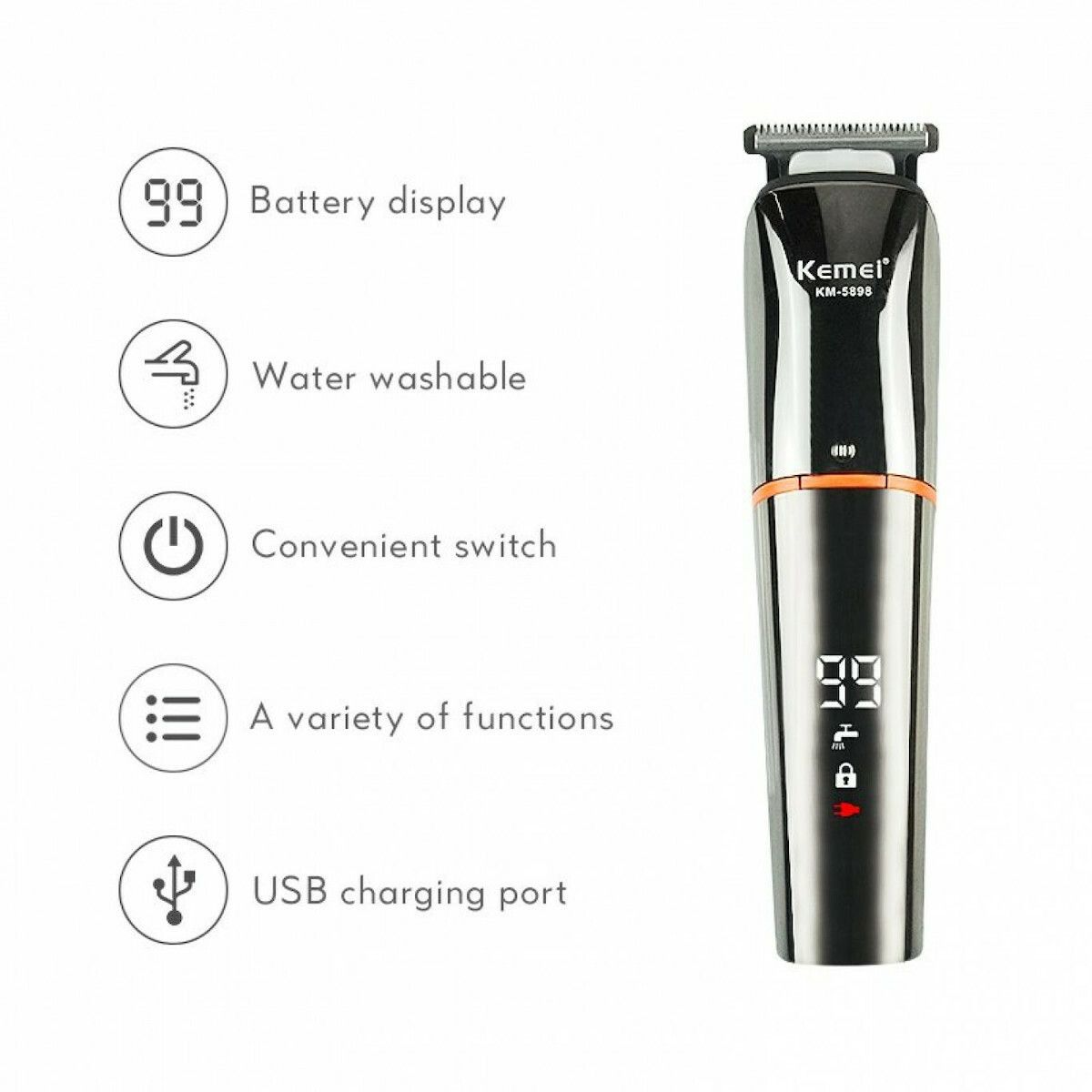 Η Επαναφορτιζόμενη Κουρευτική Μηχανή 11 σε 1 Kemei KM-5898 είναι μια ολοκληρωμένη λύση για την περιποίηση των μαλλιών, του προσώπου και του σώματος του κάθε άντρα.