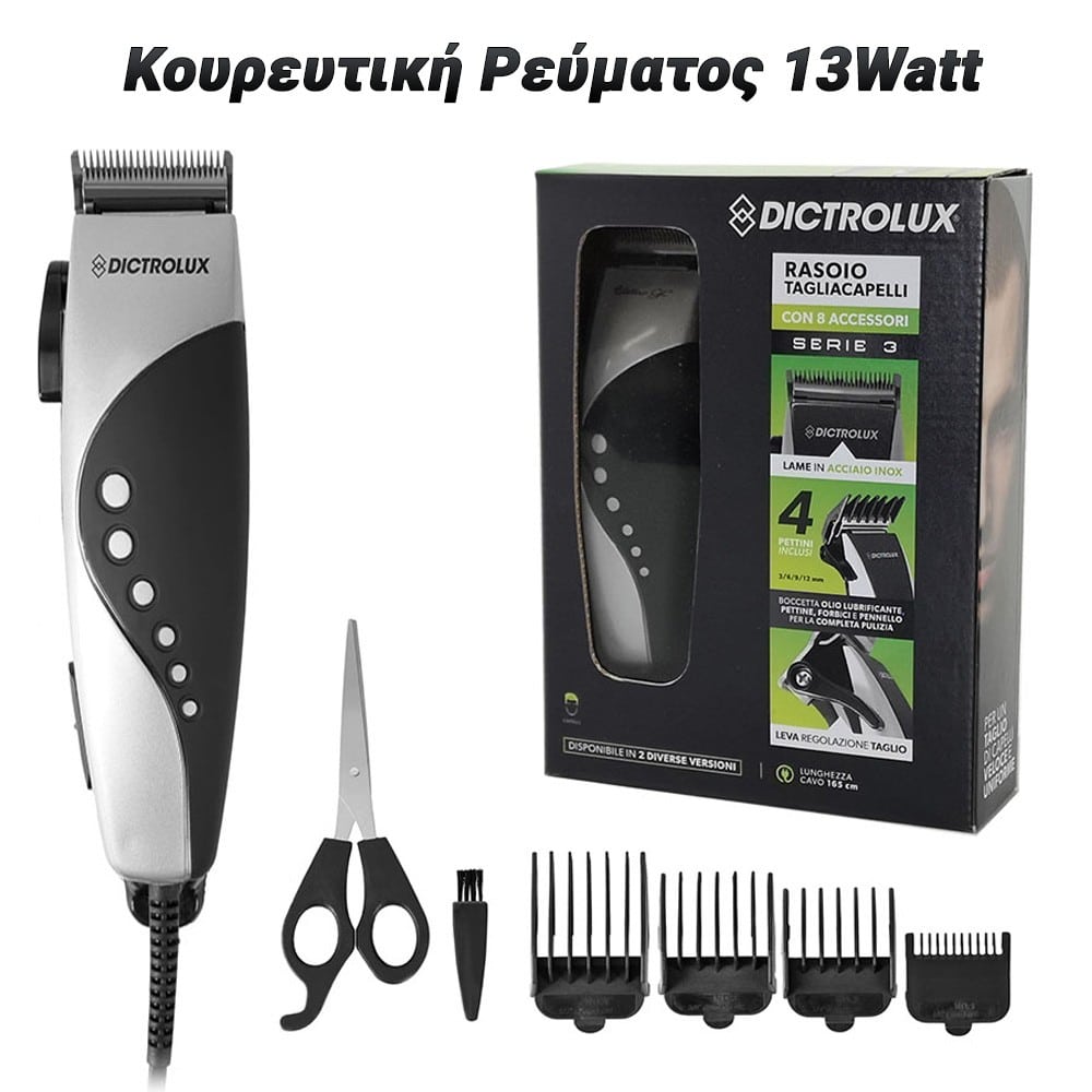 Ανακαλύψτε την άνεση και την ακρίβεια του επαγγελματικού κουρέματος με την Κουρευτική Ρεύματος 13Watt. Σχεδιασμένη για να προσφέρει εξαιρετικά αποτελέσματα με επαγγελματική ποιότητα, αυτή η κουρευτική μηχανή είναι ιδανική για τη διατήρηση ενός άψογου κούρεματος ή της περιποίησης του λουκ σας στο σπίτι. Χαρακτηριστικά Προϊόντος: Ικανότητα 13 Watt: Η ισχυρή μηχανή 13 Watt προσφέρει σταθερή και αξιόπιστη απόδοση, εξασφαλίζοντας καθαρά και ακριβή αποτελέσματα κάθε φορά που τη χρησιμοποιείτε. Επαγγελματική Ακρίβεια: Εξοπλισμένη με αιχμηρές, ακριβείας λεπίδες, η κουρευτική μηχανή εξασφαλίζει άψογο κούρεμα, ακόμη και για τα πιο απαιτητικά στιλ και μήκη μαλλιών. Ευκολία Χρήσης: Ο εργονομικός σχεδιασμός και η ελαφριά κατασκευή καθιστούν τη χρήση της κουρευτικής μηχανής άνετη και εύκολη, ενώ το μακρύ καλώδιο επιτρέπει μεγαλύτερη ευελιξία κατά τη χρήση. Διαφορετικά Αξεσουάρ: Συνοδεύεται με ποικιλία ανταλλακτικών και εξαρτημάτων για προσαρμοσμένα κουρέματα. Με την Κουρευτική Ρεύματος 13Watt, θα απολαμβάνετε επαγγελματικά αποτελέσματα στο σπίτι με ευκολία και άνεση. Ιδανική για καθημερινή χρήση ή για ειδικές περιστάσεις, αυτή η κουρευτική μηχανή θα γίνει ο καλύτερος σύμμαχός σας στην περιποίηση και το στυλ των μαλλιών σας. Ανακαλύψτε την ποιότητα και την απόδοση που προσφέρει η Κουρευτική Ρεύματος 13Watt και απολαύστε την ακριβή περιποίηση που σας αξίζει!