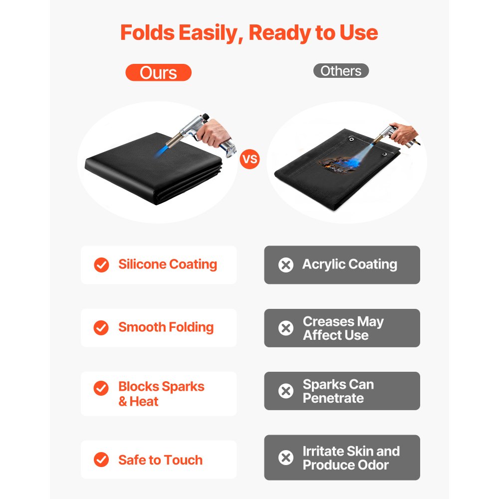 Ανθεκτικό σε υψηλές θερμοκρασίες: Η κουβέρτα συγκόλλησης VEVOR 4 FT x 6 FT αντέχει σε υψηλές θερμοκρασίες έως και 1800°F (982℃), προσφέροντας εξαιρετική αντοχή στη θερμότητα και τη φλόγα για προστασία από σπινθήρες, φλόγες, λιωμένο μέταλλο και έντονη θερμότητα. Μακροχρόνια Ανθεκτικότητα: Κατασκευασμένη από υαλοβάμβακα με επικάλυψη σιλικόνης, η θερμοανθεκτική κουβέρτα συγκόλλησης μας αντιστέκεται στη θερμότητα, το σκίσιμο και τη φθορά. Οι ενισχυμένες ραμμένες άκρες αποτρέπουν το ξέφτισμα και το ξεφτίλισμα, εξασφαλίζοντας βελτιωμένη ανθεκτικότητα και απόδοση. Εύκολο κρέμασμα και αποθήκευση: Το μονωτικό στρώμα συγκόλλησης με επιβράδυνση φλόγας διαθέτει μεταλλικούς δακτυλίους για ασφαλές και βολικό κρέμασμα. Ελαφρύ και πτυσσόμενο, είναι εύκολο στη μεταφορά και την αποθήκευση, επιτρέποντάς σας να το παίρνετε εύκολα μεταξύ των εργοταξίων. Αξιόπιστη προστασία: Η πυράντοχη κουβέρτα συγκόλλησης μας είναι η κορυφαία επιλογή για την ασφάλεια κατά τη συγκόλληση, προστατεύοντας τα δάπεδα, τους τοίχους, τους πάγκους εργασίας και τον εξοπλισμό από σπινθήρες και υπερβολική θερμότητα. Είτε σε εργαστήρια, γκαράζ είτε σε εργοτάξια, παρέχει αξιόπιστη προστασία. Ευρείες εφαρμογές: Πέρα από τις συγκολλήσεις, αυτή η κουβέρτα συγκόλλησης από υαλοβάμβακα με επικάλυψη σιλικόνης είναι επίσης απαραίτητη για την κοπή μετάλλων, τη σχάρα ή την πυρασφάλεια στο κάμπινγκ. Παρέχει αξιόπιστη προστασία από τη θερμότητα, τη φλόγα και τους σπινθήρες, επιτρέποντάς σας να συγκολλάτε με μεγαλύτερη σιγουριά.