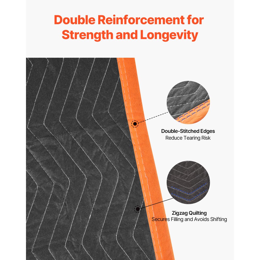 Προστασία από την απορρόφηση κραδασμών: Η γέμιση από ανακυκλωμένο βαμβάκι με αφράτη δομή ινών παρέχει εξαιρετική απορρόφηση κραδασμών, απορροφά και διασπείρει την κρούση κατά τη μετακίνηση. Μειώνει τις γρατσουνιές και τα βαθουλώματα που προκαλούνται από χτυπήματα ή άμεση επαφή, προσφέροντας προστασία στα έπιπλά σας. Ενισχυμένη κατασκευή: Σχεδιασμένες με διπλή ραφή και ζιγκ-ζαγκ καπιτονέ, οι κινούμενες κουβέρτες είναι ανθεκτικές στις άκρες και ανθεκτικές στο σκίσιμο. Η ραφή ασφαλίζει το ύφασμα και το γέμισμα μεταξύ τους, ενισχύοντας την αντοχή και εξασφαλίζοντας μακροχρόνια ανθεκτικότητα. Σετ 12 τεμαχίων: Περιλαμβάνει 12 κουβέρτες συσκευασίας, καλύπτοντας τις ανάγκες οικογενειών ή γραφείων κατά τη μετακίνηση ή την αποθήκευση πολλαπλών αντικειμένων. Περιλαμβάνει 2 ελαστικούς ιμάντες για γρήγορη ασφάλιση των κουβερτών γύρω από τα έπιπλα, αποτρέποντας τη χαλάρωση ή την ολίσθηση για πιο αποτελεσματική μετακίνηση. Ιδανικό μέγεθος: Κάθε κουβέρτα μεταφοράς έχει διαστάσεις 72 x 40 ίντσες / 1829 x 1016 χιλιοστά, ιδανικές για την κάλυψη καρεκλών, κομοδίνων, μικρών συσκευών και μεσαίων έως μικρών επίπλων. Με βάρος μόνο 2,2 λίβρες / 1 κιλό ανά τεμάχιο, είναι ελαφριά και εύκολη στη χρήση από ένα άτομο. Πολλαπλή χρήση: Όχι μόνο για μετακόμιση—είναι επίσης ιδανικό για μακροχρόνια αποθήκευση για προστασία από τη σκόνη και την υγρασία, ως πατάκι δαπέδου σε γκαράζ ή εργαστήρια, ως μαξιλάρι παιχνιδιού για κατοικίδια, ως επένδυση πορτμπαγκάζ για την αποφυγή γρατζουνιών ή ακόμα και ως προστασία από τον παγετό για φυτά κήπου.