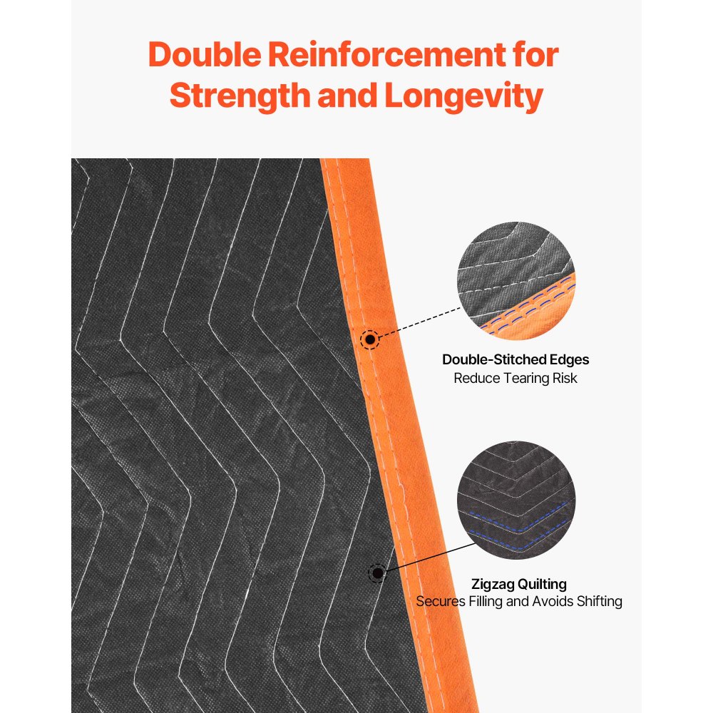 Προστασία από την απορρόφηση κραδασμών: Η γέμιση από ανακυκλωμένο βαμβάκι με αφράτη δομή ινών παρέχει εξαιρετική απορρόφηση κραδασμών, απορροφά και διασπείρει την κρούση κατά τη μετακίνηση. Μειώνει τις γρατσουνιές και τα βαθουλώματα που προκαλούνται από χτυπήματα ή άμεση επαφή, προσφέροντας προστασία στα έπιπλά σας. Ενισχυμένη κατασκευή: Σχεδιασμένες με διπλή ραφή και ζιγκ-ζαγκ καπιτονέ, οι κινούμενες κουβέρτες είναι ανθεκτικές στις άκρες και ανθεκτικές στο σκίσιμο. Η ραφή ασφαλίζει το ύφασμα και το γέμισμα μεταξύ τους, ενισχύοντας την αντοχή και εξασφαλίζοντας μακροχρόνια ανθεκτικότητα. Σετ 6 τεμαχίων: Περιλαμβάνει 6 κουβέρτες συσκευασίας, καλύπτοντας τις ανάγκες οικογενειών ή γραφείων κατά τη μετακίνηση ή την αποθήκευση πολλαπλών αντικειμένων. Περιλαμβάνει 2 ελαστικούς ιμάντες για γρήγορη ασφάλιση των κουβερτών γύρω από τα έπιπλα, αποτρέποντας τη χαλάρωση ή την ολίσθηση για πιο αποτελεσματική μετακίνηση. Ιδανικό μέγεθος: Κάθε κουβέρτα μεταφοράς έχει διαστάσεις 72 x 40 ίντσες / 1829 x 1016 χιλιοστά, ιδανικές για την κάλυψη καρεκλών, κομοδίνων, μικρών συσκευών και μεσαίων έως μικρών επίπλων. Με βάρος μόνο 2,2 λίβρες / 1 κιλό ανά τεμάχιο, είναι ελαφριά και εύκολη στη χρήση από ένα άτομο. Πολλαπλή χρήση: Όχι μόνο για μετακόμιση—είναι επίσης ιδανικό για μακροχρόνια αποθήκευση για προστασία από τη σκόνη και την υγρασία, ως πατάκι δαπέδου σε γκαράζ ή εργαστήρια, ως μαξιλάρι παιχνιδιού για κατοικίδια, ως επένδυση πορτμπαγκάζ για την αποφυγή γρατζουνιών ή ακόμα και ως προστασία από τον παγετό για φυτά κήπου.