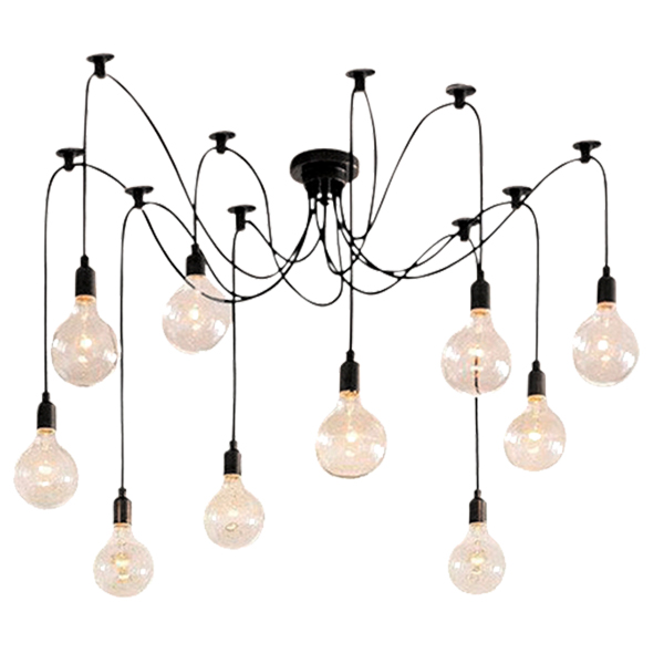 GLOBOSTAR® WIRED 01173 Vintage Κρεμαστό Φωτιστικό Οροφής με Ντουί 10 x E27 AC 220-240V IP20 - Μαύρο - Μ200 x Π200 x Υ100cm