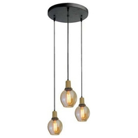 Κρεμαστό Φωτιστικό V-TAC Γυαλί Amber και Ξύλινη Βάση με ντουί Ε27 Ф165