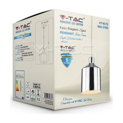 Κρεμαστό Φωτιστικό V-TAC Μεταλλικό Χρώμα Χρώμιο με ντουί Ε27 Φ17 3705